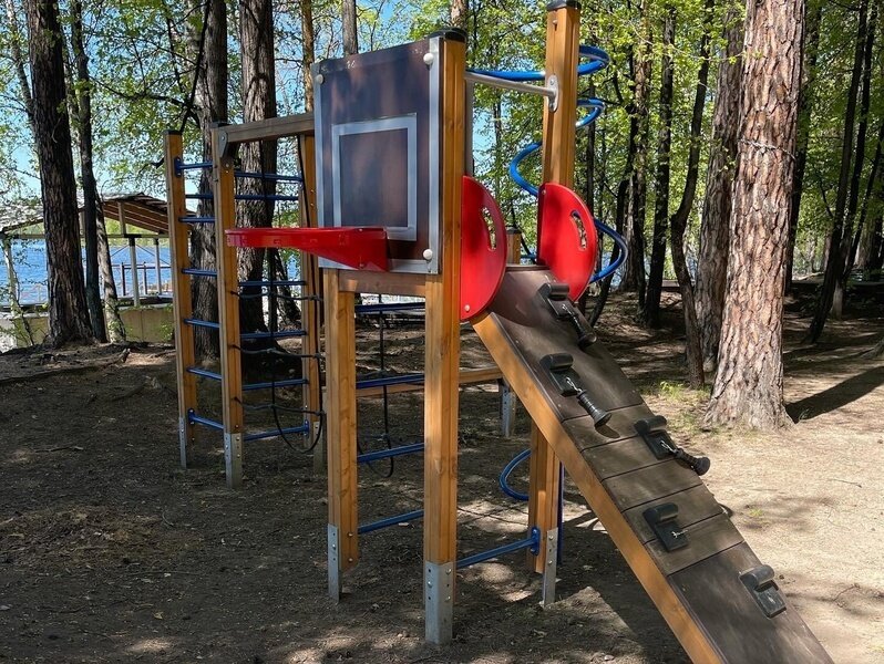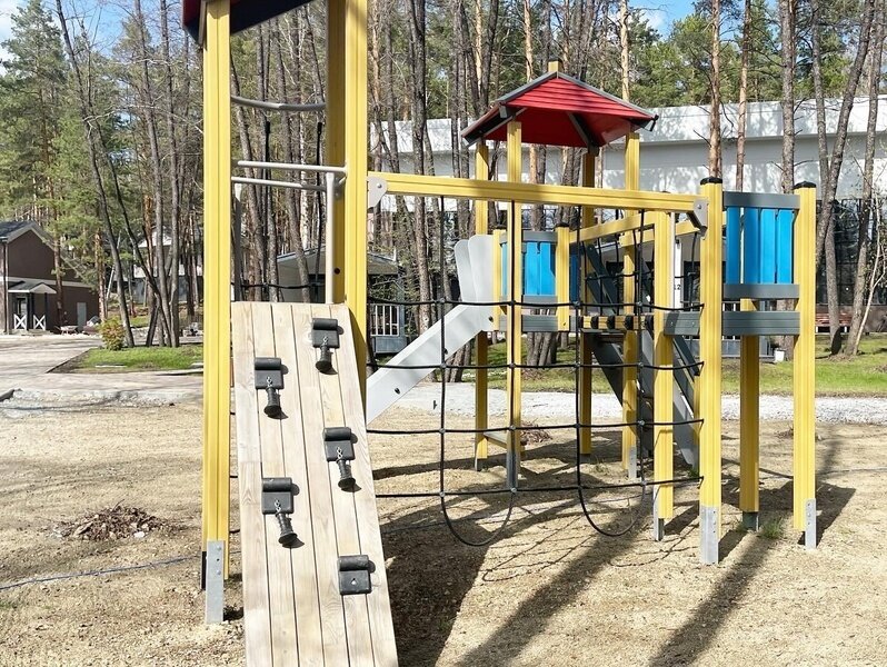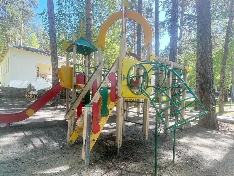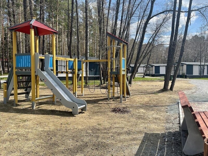 - большой детский комплекс с двумя горками и сухим бассейном;