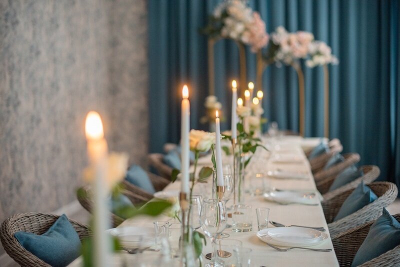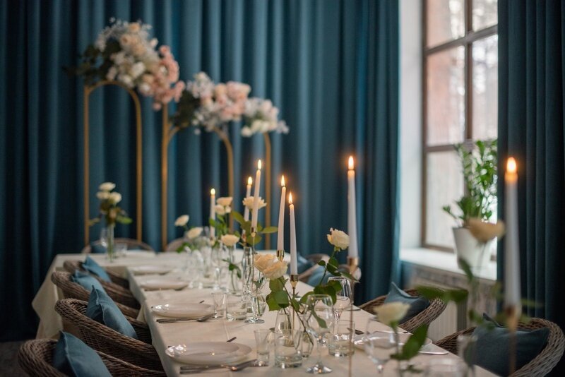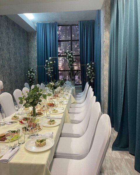 Камерный зал для событий в тесном кругу. Вместимость при банкетной рассадке до 35 гостей.
