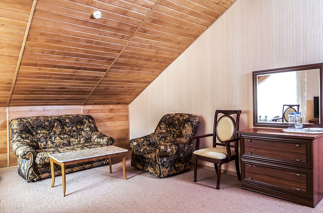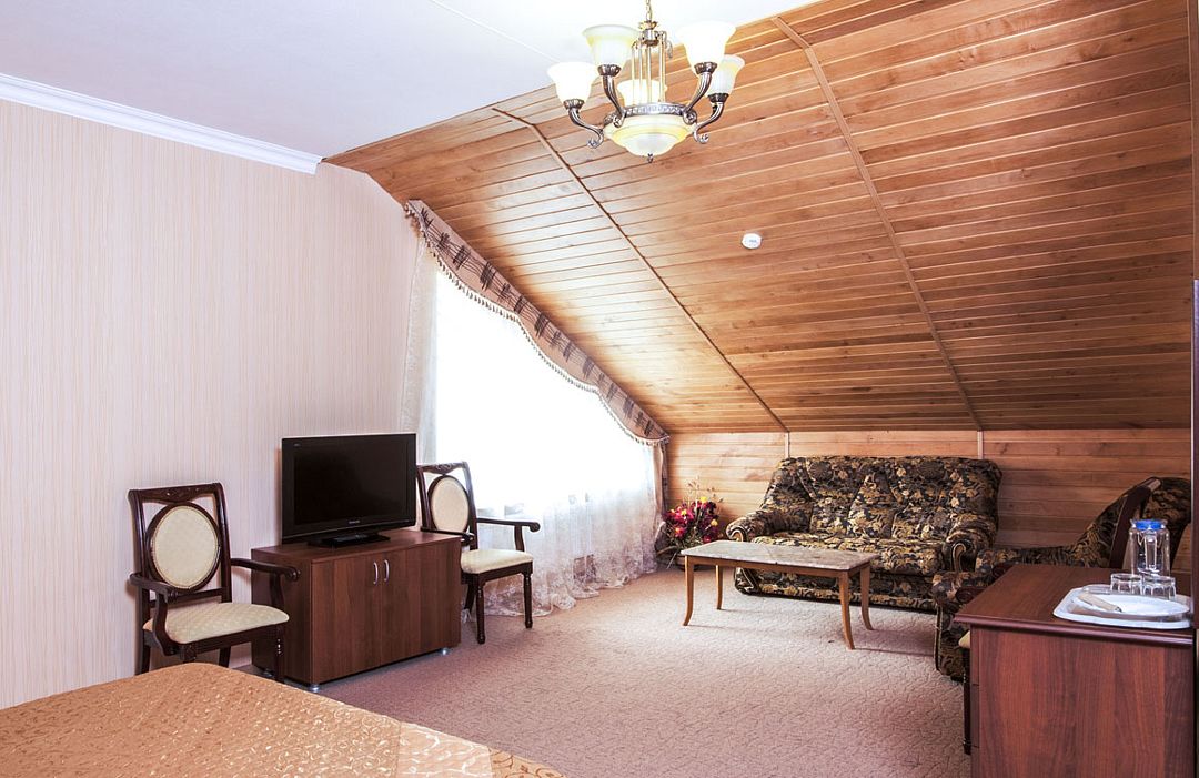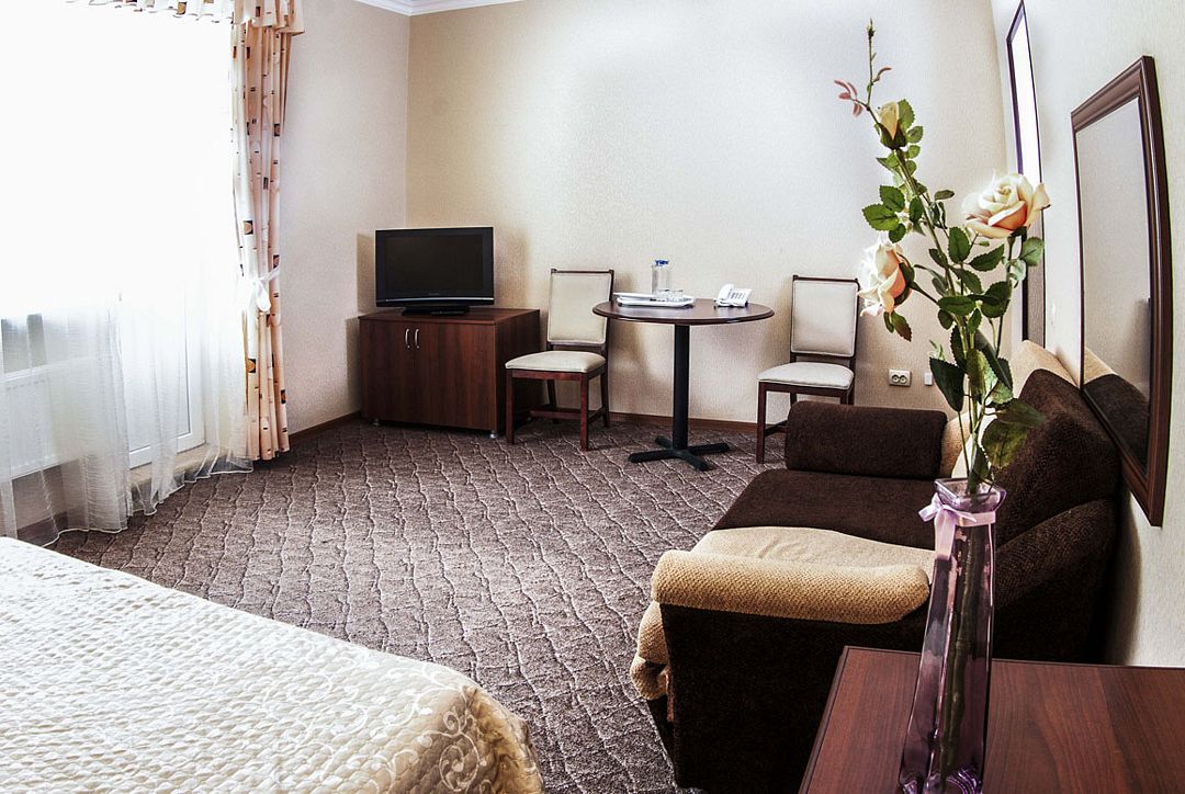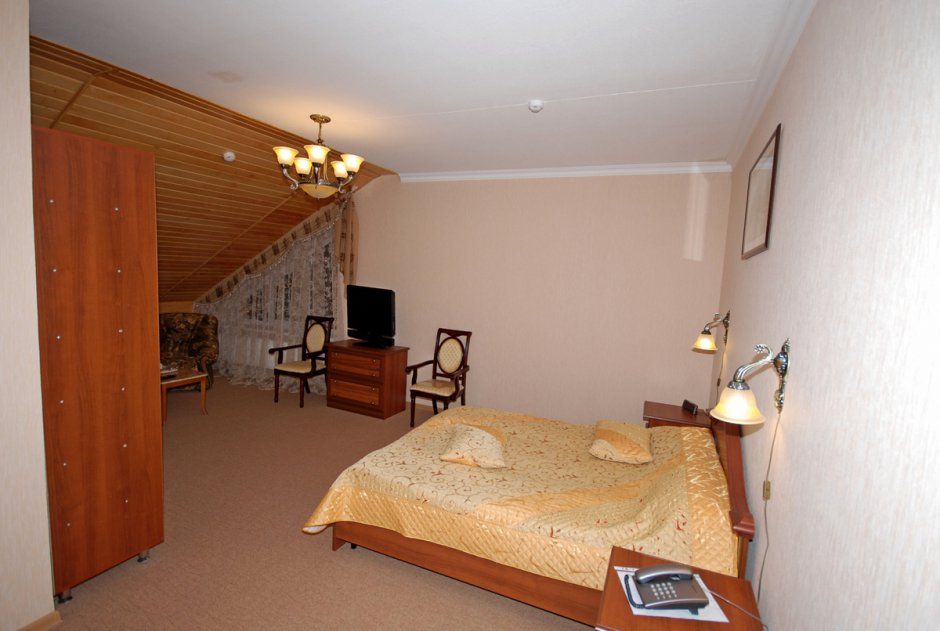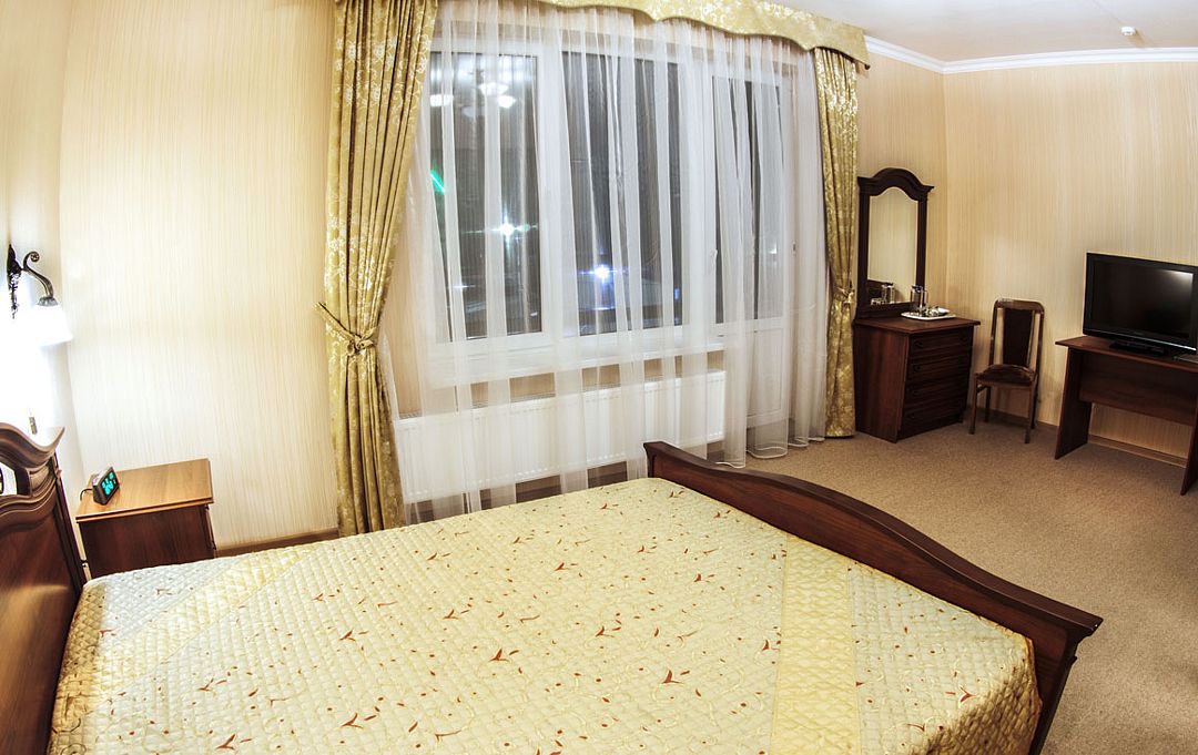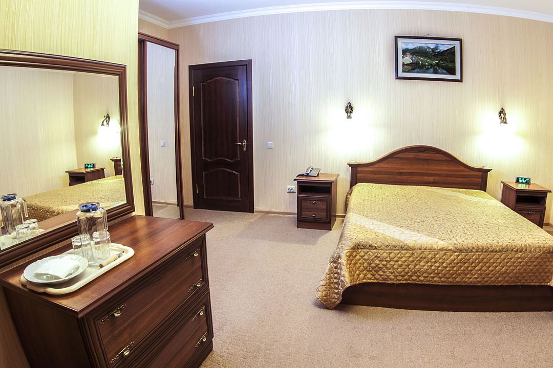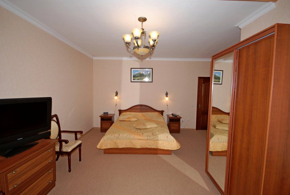 В 5-ти этажном корпусе предлагаются комфортные 2-х местные номера класса Люкс и Стандарт. Внутри обустроен санузел и душ с гигиеническими принадлежностями для каждого гостя. Номера оснащены телевизором, комфортабельной мебелью.