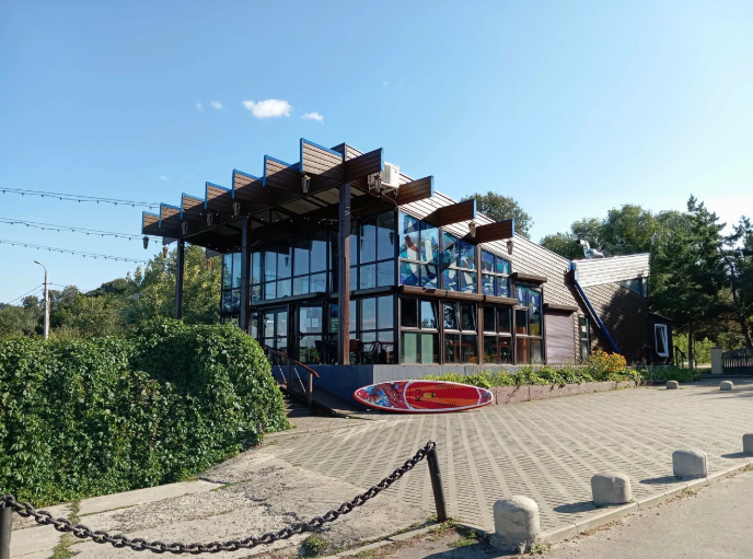 Кафе расположено на берегу Оки, недалеко от центра города (200 м). Имеется открытая летняя терраса, с которой открывается панорамный вид на реку. В меню широко представлены разнообразные блюда русской, украинской, восточной кухни. Также разработано гриль–меню. Уютный внутренний зал рассчитан на 60 человек.