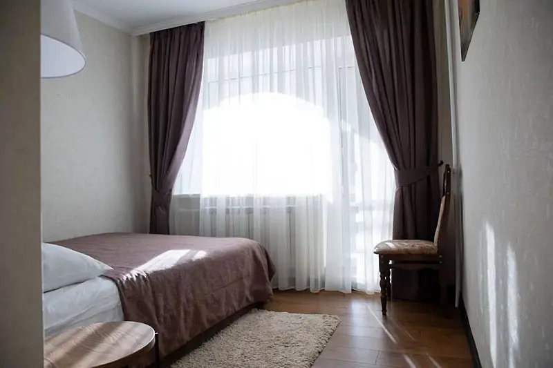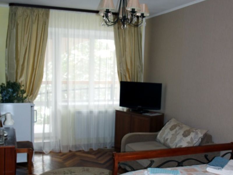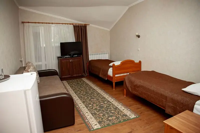 Трехэтажное здание пансионата построено в альпийском стиле по индивидуальному проекту и может разместить до 65 человек. В распоряжении гостей номера различных категорий: эконом, стандарт, стандарт плюс, полулюкс и люкс, каждый из которых оснащён всеми необходимыми удобствами.