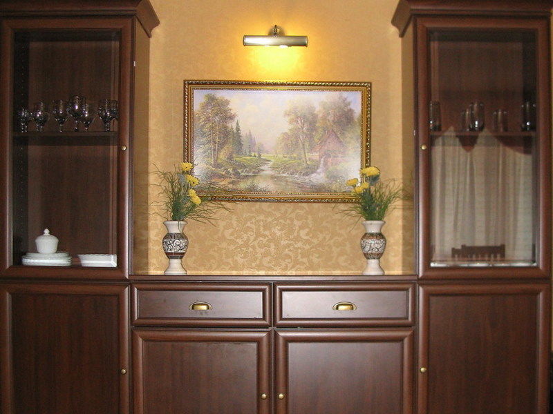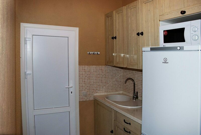 - кухонный уголок (СВЧ-печь, холодильник, электрический чайник, посуда).
