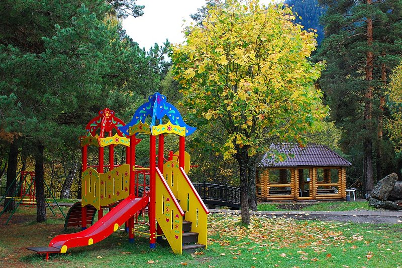 Семейный отдыхДостоинстваВ Архызе одно из лучших мест! На самый высокий балл оцениваю организацию и размещение: территория полностью укомплектована, всё буквально здесть есть: и мангалы, и беседки, и сауна, и бассейн, и детская площадка. Можно поиграть в теннис. Часто организуются походы для туристов.