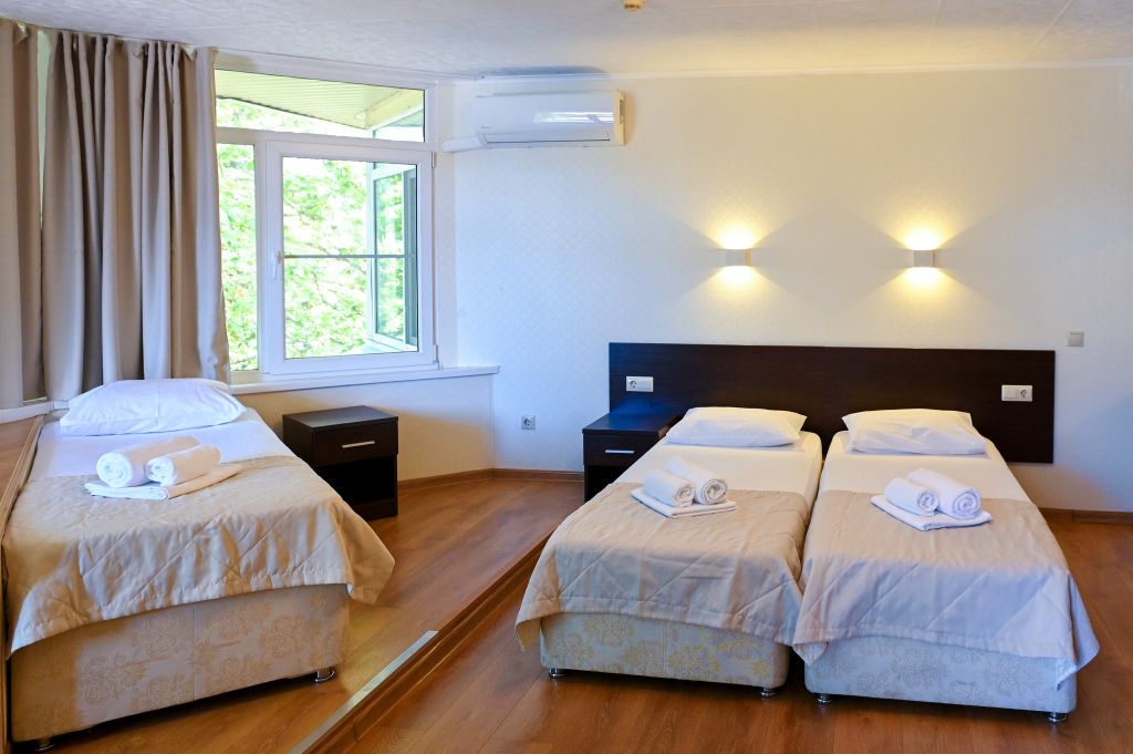 Трехместные номера Комфорт позволяют семьям с ребенком или компании друзей остановиться с комфортом в пансионате.