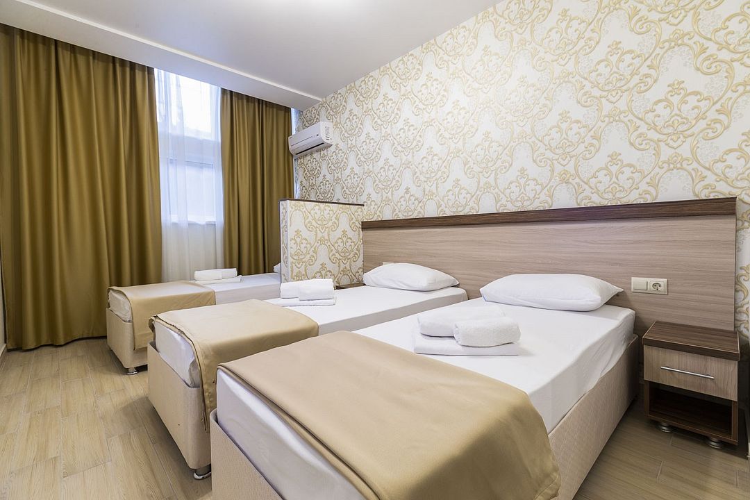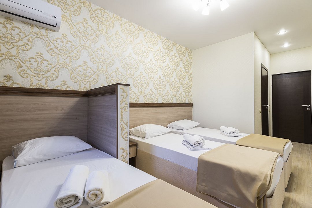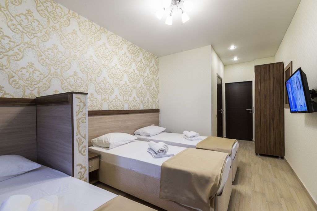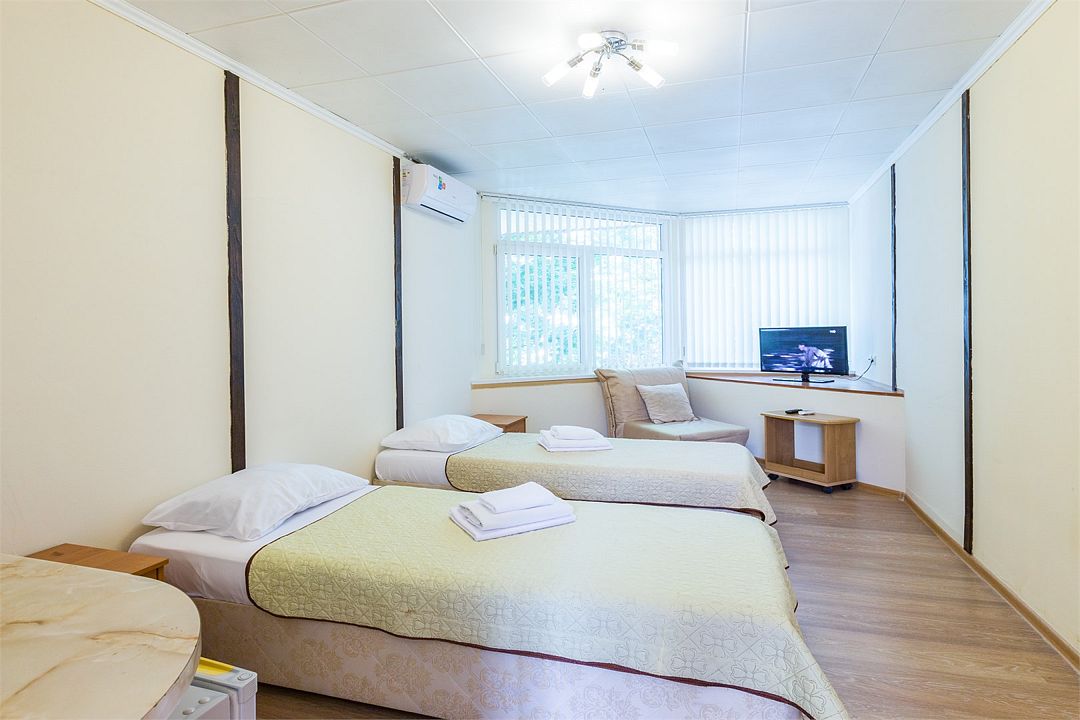 Трехместные номера «Комфорт» позволяют семьям с ребенком или компании друзей остановиться с комфортом в пансионате. Номера данной категории расположены на 1-ом, 2-ом, 3-м и 4-м этажах.Услуги и удобства