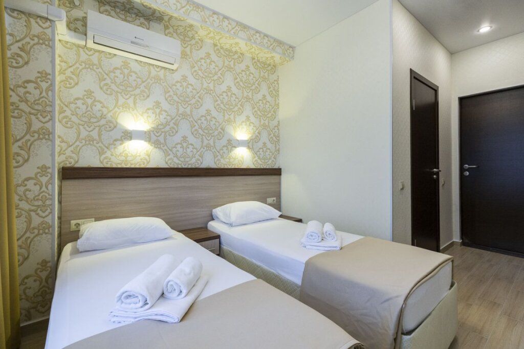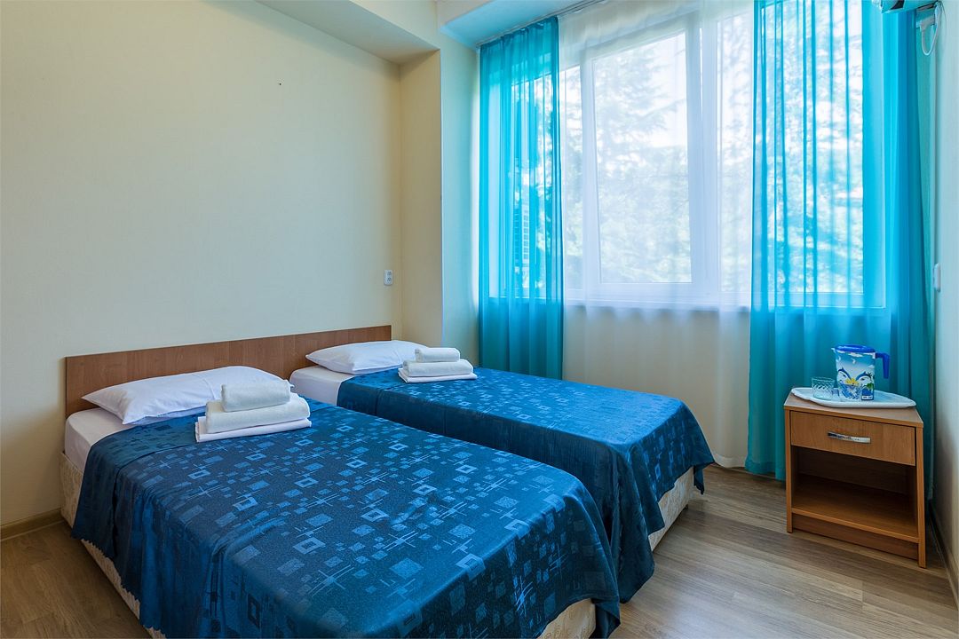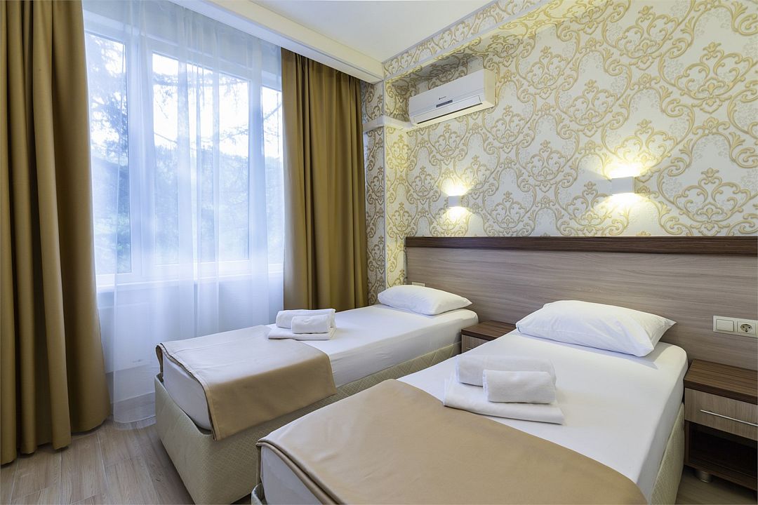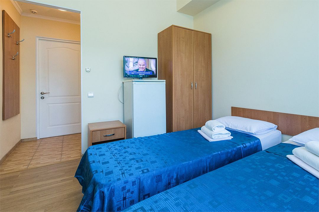 Две отдельные односпальные кровати, кондиционер, холодильник, телевизор, ванна. Номера данной категории расположены на мансарде 6 этаж (лифт до 5-этажа, затем необходимо подняться один этаж пешком). Часть номеров с видом на море, часть с видом на горы.Услуги и удобства