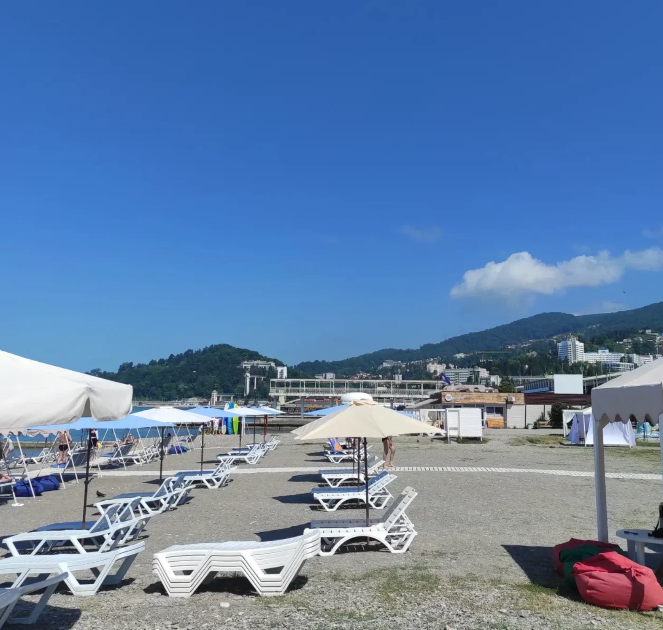 Тип пляжа: галечный, городской, оборудованныйИнфраструктура: лежаки, зонтики, шезлонги, бар, спасательУдобства на пляже: душРасположение: 50 м, в пешей доступностиВ 50 метрах от пансионата расположен городской пляж. На пляже работают душ, туалет и кафе, где продаются прохладительные напитки. Для детей работают надувные горки и прокат водного инвентаря.
