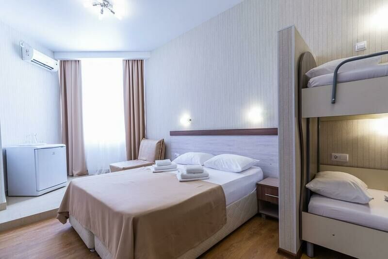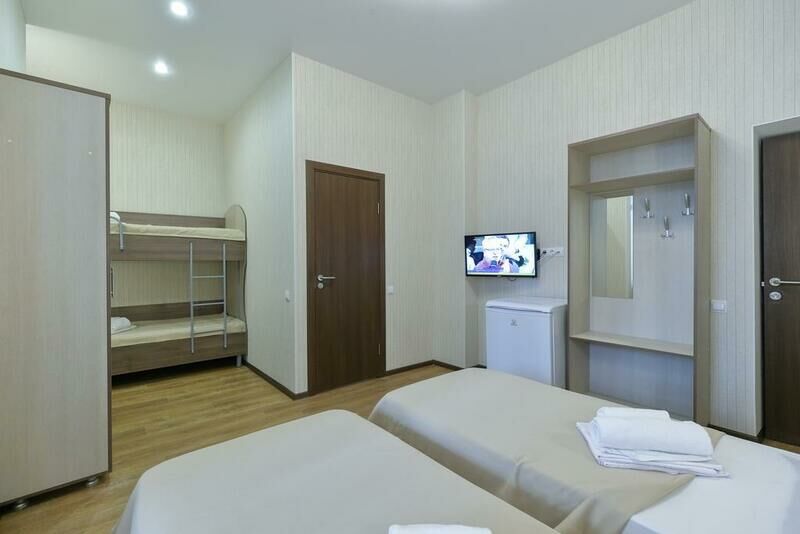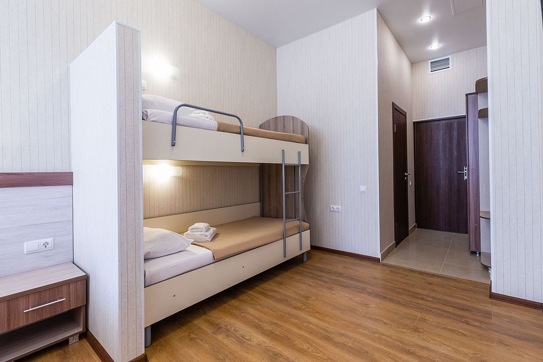 В номере расположены две отдельные односпальные кровати и одна двухъярусная кровать или одна двуспальная и одна двухъярусная кровати, или четыре односпальные кровати. Это отличный вариант для семьи с детьми. Номера данной категории расположены на 1-ом, 2-ом этаже и 3-ей площадке (необходимо подняться один этаж пешком).Услуги и удобства