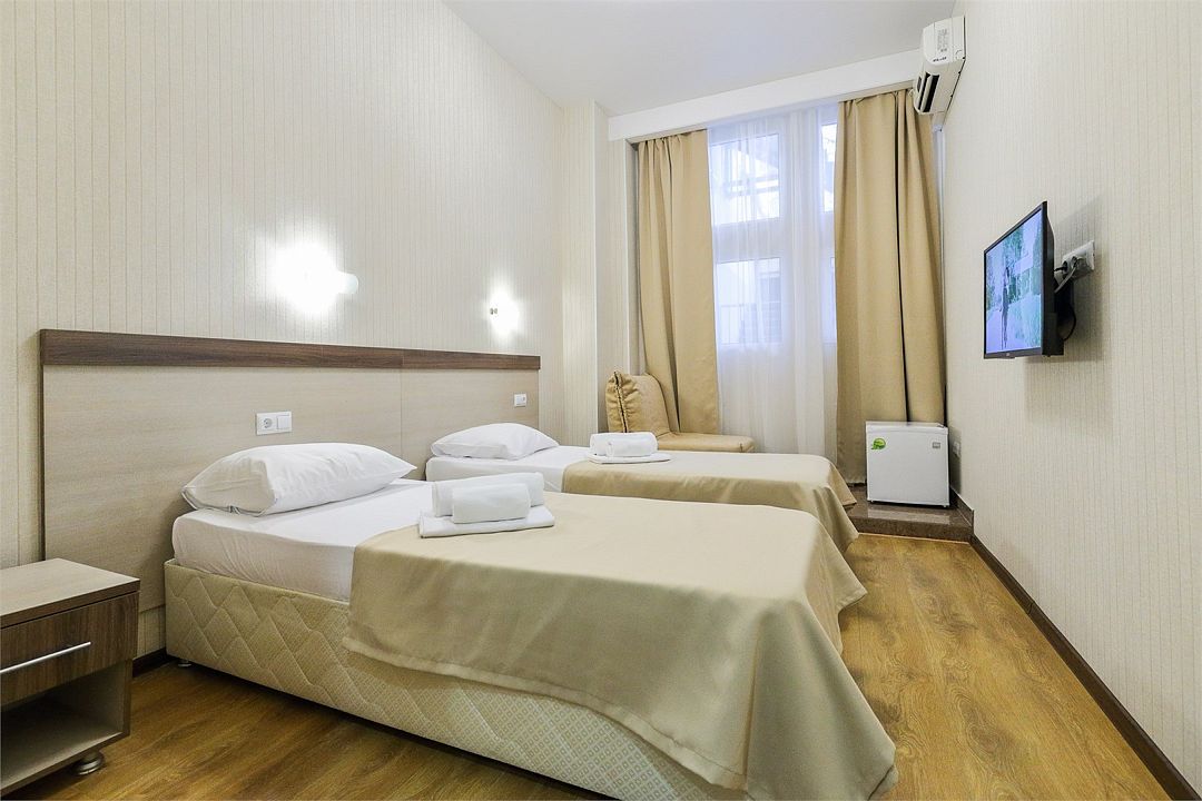 В номере две односпальные кровати, кондиционер, телевизор, современная душевая кабина, функциональная мебель. номера данной категории расположены на 1, 2, 3, 4 этажах.