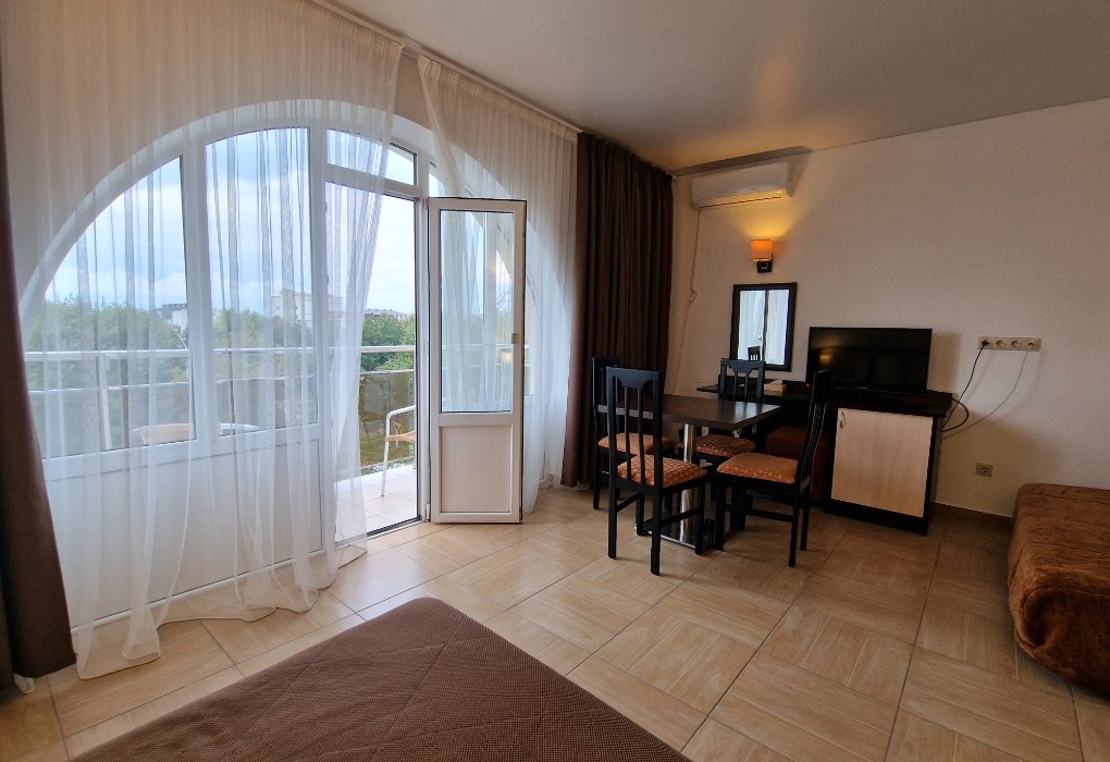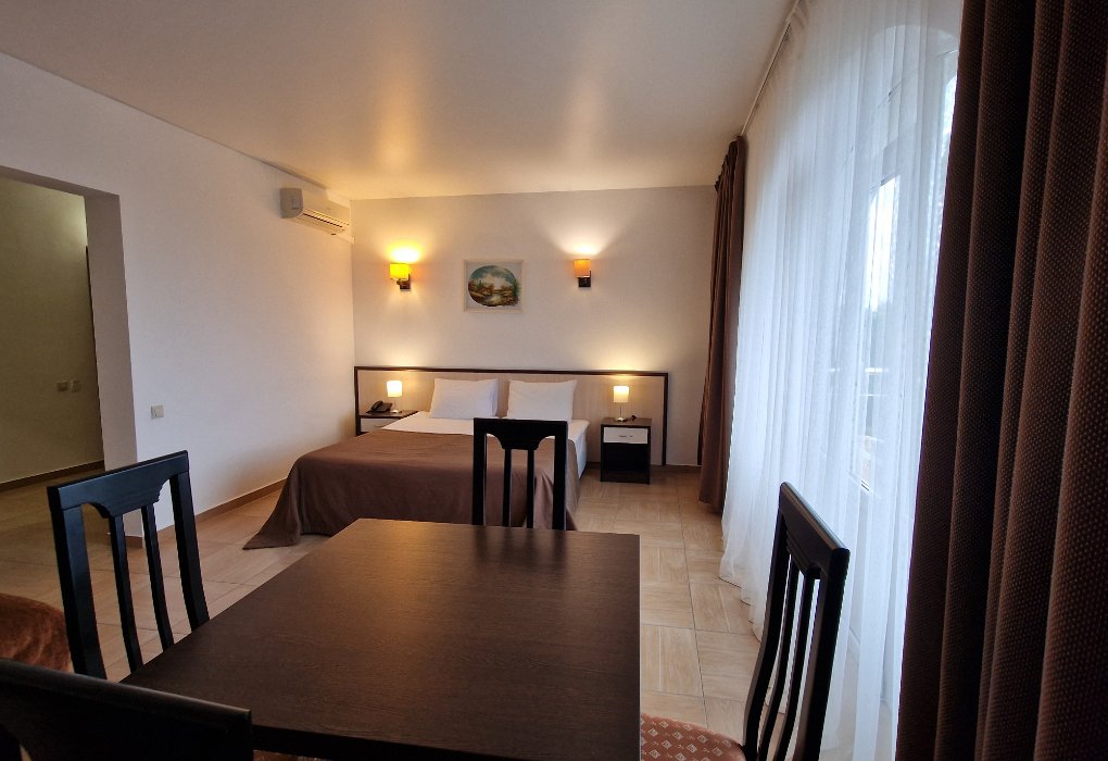 Путешествие с семьейОтличный пансионатВ пансионате отдыхаем уже во второй раз. В 2021 году тоже здесь отдыхали и вернулись снова. Очень нам нравится это место )) Номера уютные, все есть, первый раз окна выходили во двор на парковку, в этот раз на Пионерский проспект, оба варианта норм. Еда вкусная, сытная очень. В пансионате можно постирать вещи, на нижнем этаже две стиралки и порошок предоставляют все бесплатно , на каждом этаже по две гладильные доски с утюгами. Бассейн подогреваемый на территории, территория ухоженная, везде качельки-лавочки, кресла-мешки, раз три в неделю анимация, но сын не захотел ни разу туда идти, может потому что одни девочки обычно там участвуют) Есть детская и спортивная площадки, велосипеды, тенистый стол, бильярдный стол. До моря правда идти минут 7 где то, и.к. пансионат на 2-й береговой линии находится, но прогулка тоже не помешает. Пляж не сильно загружен, пройти можно только по пропускам-картам пансионата и ли по браслетам которые выдают при заселении. Лежаков хватает. Персонал вежливый, реагирует на любые просьбы сразу же, уборка ежедневная, белье меняют раз в 3 дня. В общем место хорошее, в которое хочется вернуться.