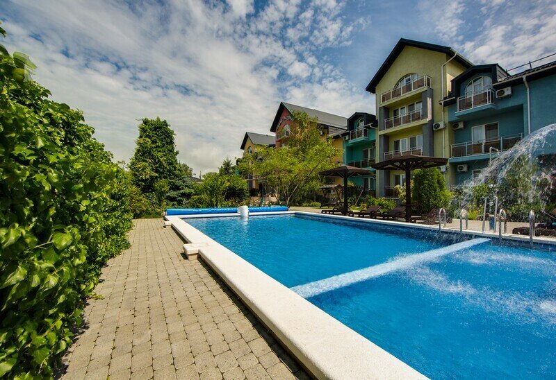 «Анапа Лазурная» - роскошный пансионат, который находится в центре известного Пионерского поселка. До популярного пляжа Джемете можно дойти за 10 минут. До Дельфинария «Немо» можно добраться пешком. Рядом находится также известный аквапарк «Тики-Так», магазины аксессуаров для пляжа и сувениров.