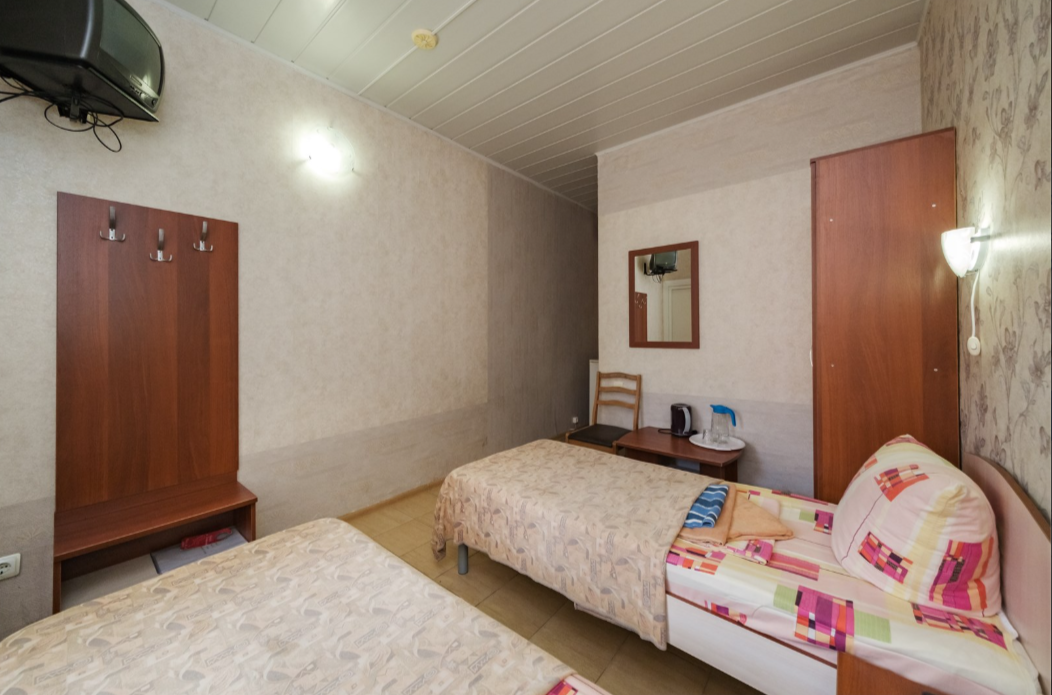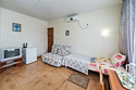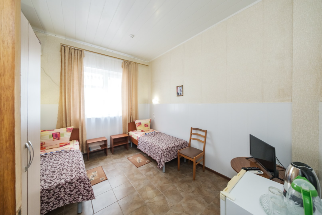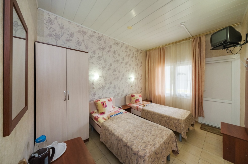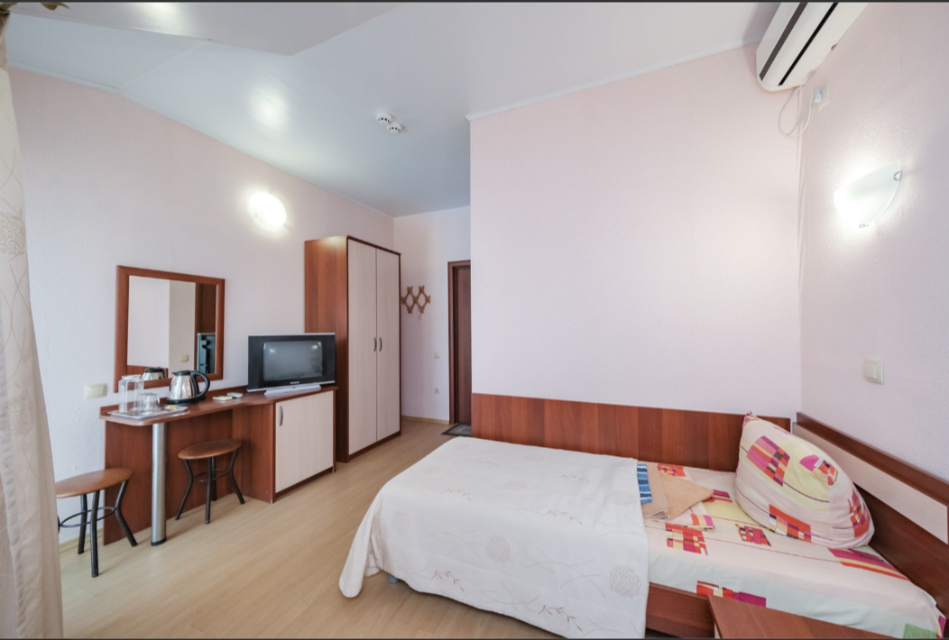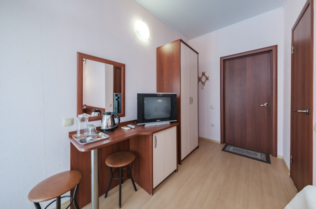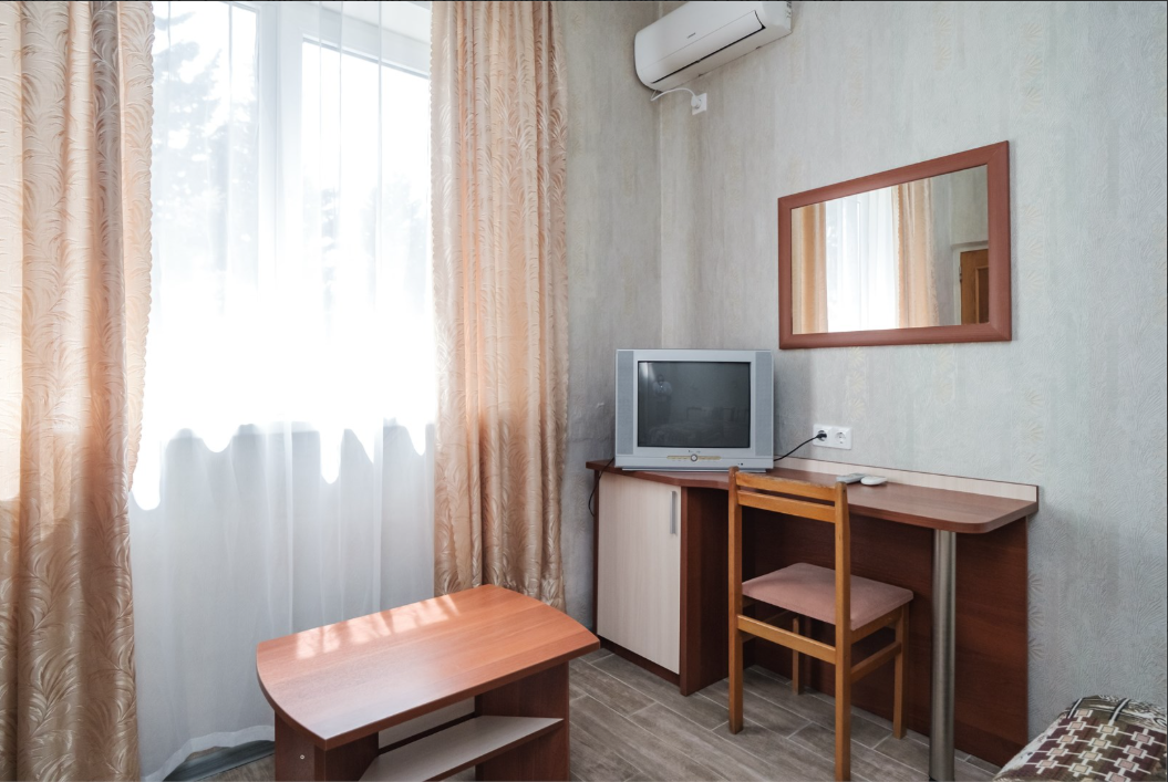 Солнечные однокомнатные номера со всем необходимым для комфортного проживания 2-х человек. В номере допускается дополнительное спальное место — евро раскладушка. Все номера данной категории находятся на 2 этаже. Проживание детей от 0 до 12 лет (включительно) на дополнительном спальном месте возможно при его наличии и по действующим тарифам. Проживание с животными возможно только по согласованию с администрацией пансионата.