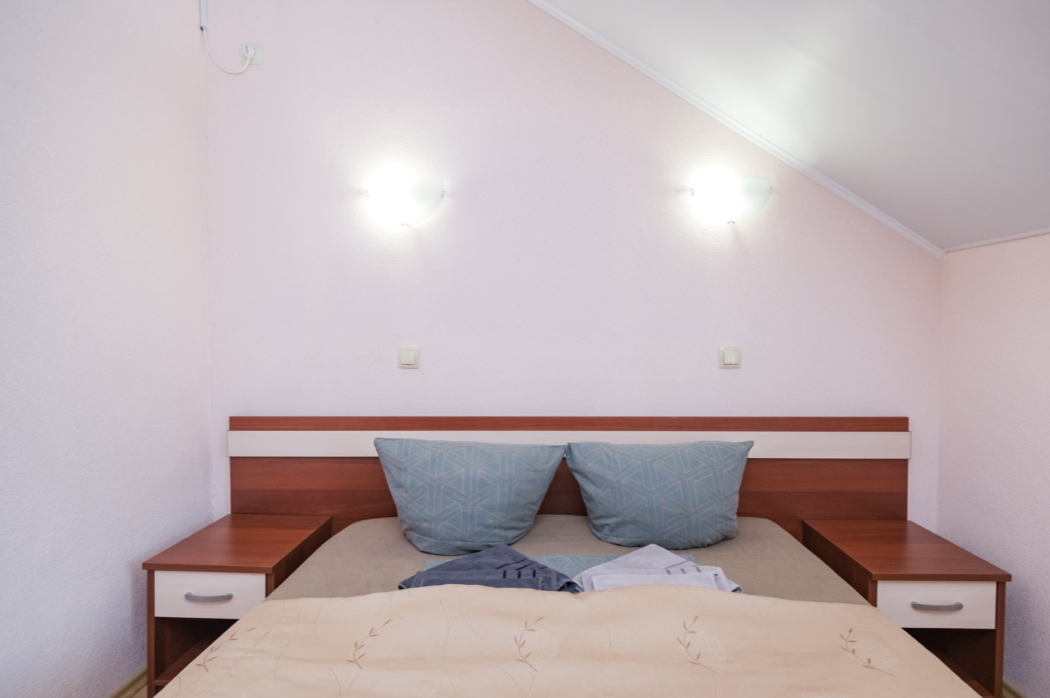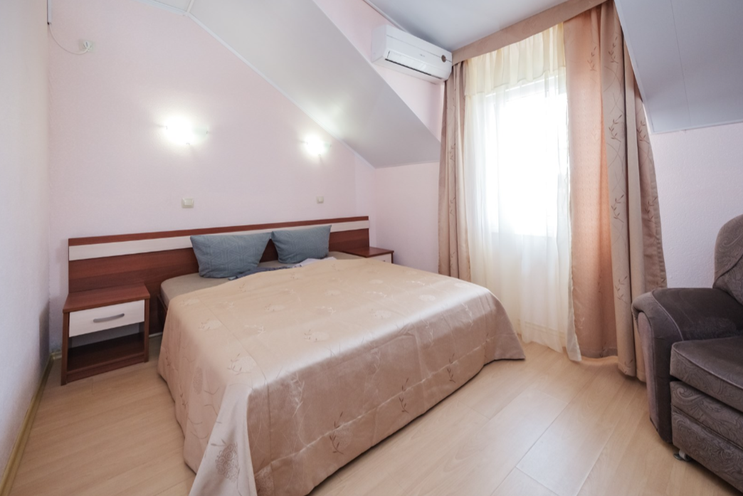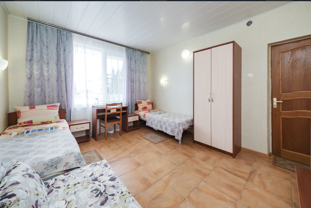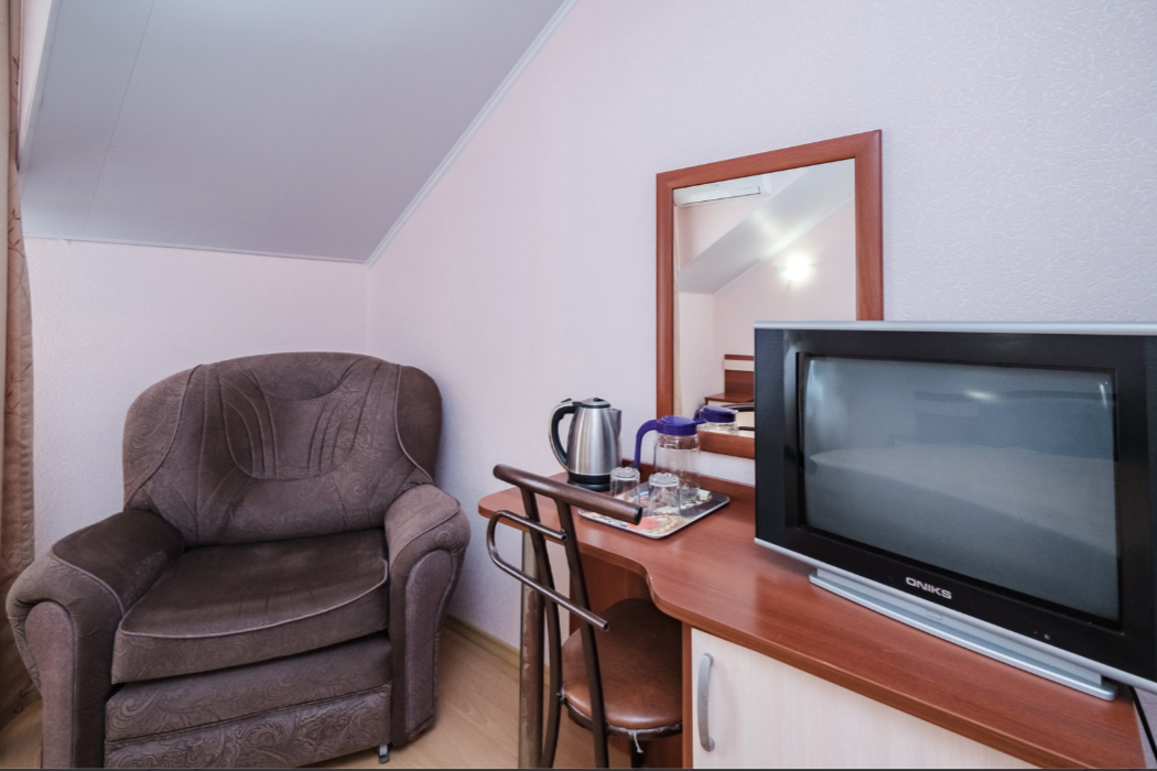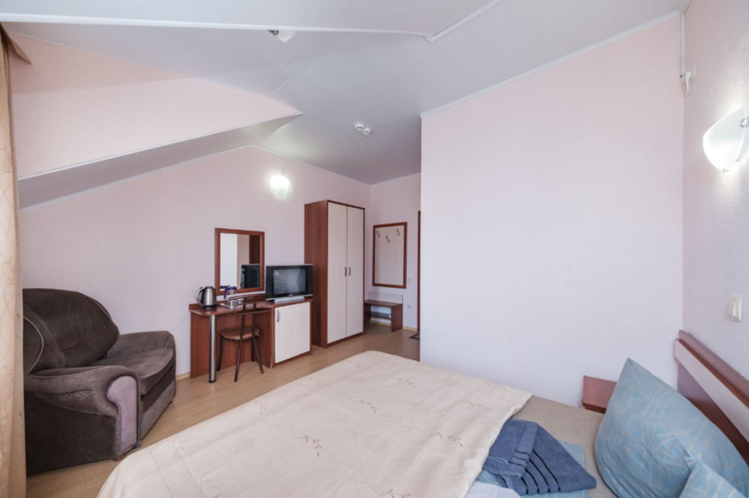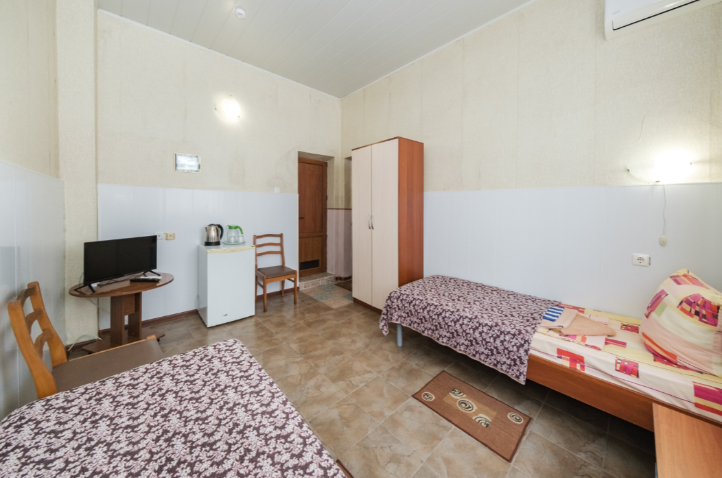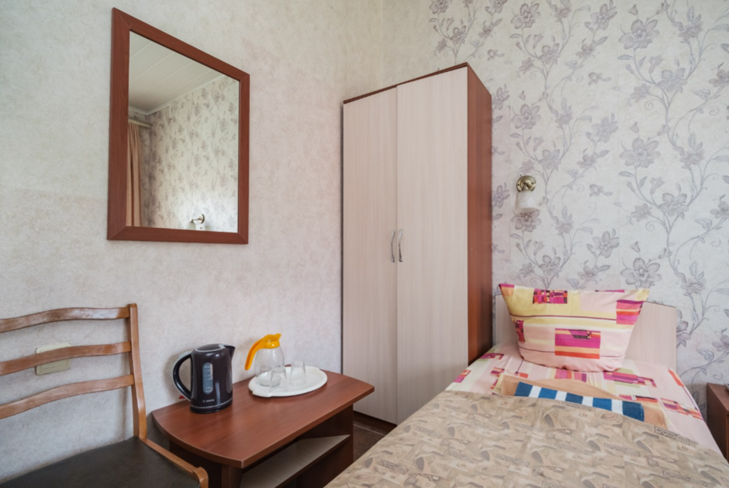Солнечные однокомнатные номера со всем необходимым для комфортного проживания 2-х человек. В номере допускается дополнительное спальное место — евро раскладушка. Все номера данной категории находятся на 2 этаже. Проживание детей от 0 до 12 лет (включительно) на дополнительном спальном месте возможно при его наличии и по действующим тарифам. Проживание с животными возможно только по согласованию с администрацией пансионата.