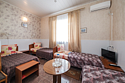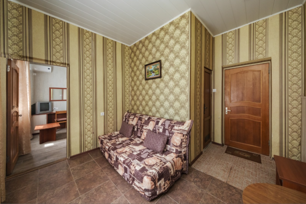 Уютный двухкомнатный номер для комфортного проживания 2+2 гостей. Двуспальная кровать и дополнительное спальное место — раскладывающийся диван, позволяет разместиться всей семье. Все номера данной категории находятся на 2 и 3 этажах. Проживание детей от 0 до 12 лет (включительно) на дополнительном спальном месте возможно по действующим тарифам. Цвет мебели и фактура могут отличаться от фото на сайте. В данной категории номеров проживание с животными ЗАПРЕЩЕНО.