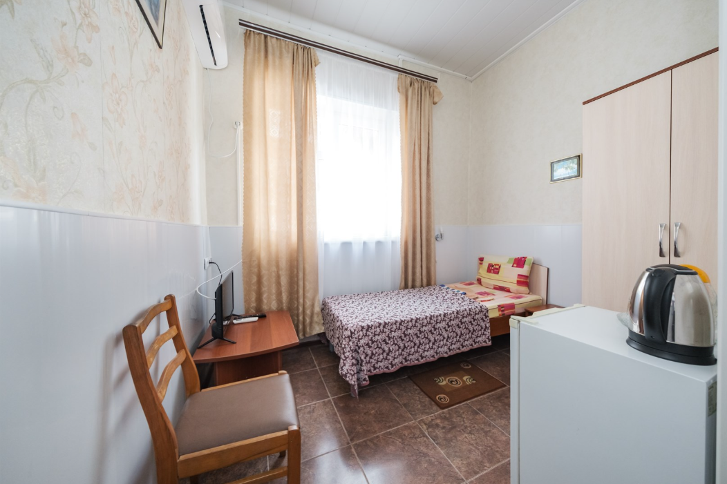 Компактный 1-но местный номер со всем необходимым для уютного проживания. Номер данной категории находится на 2 этаже, на теневой стороне. В данной категории номеров проживание с животными ЗАПРЕЩЕНО.