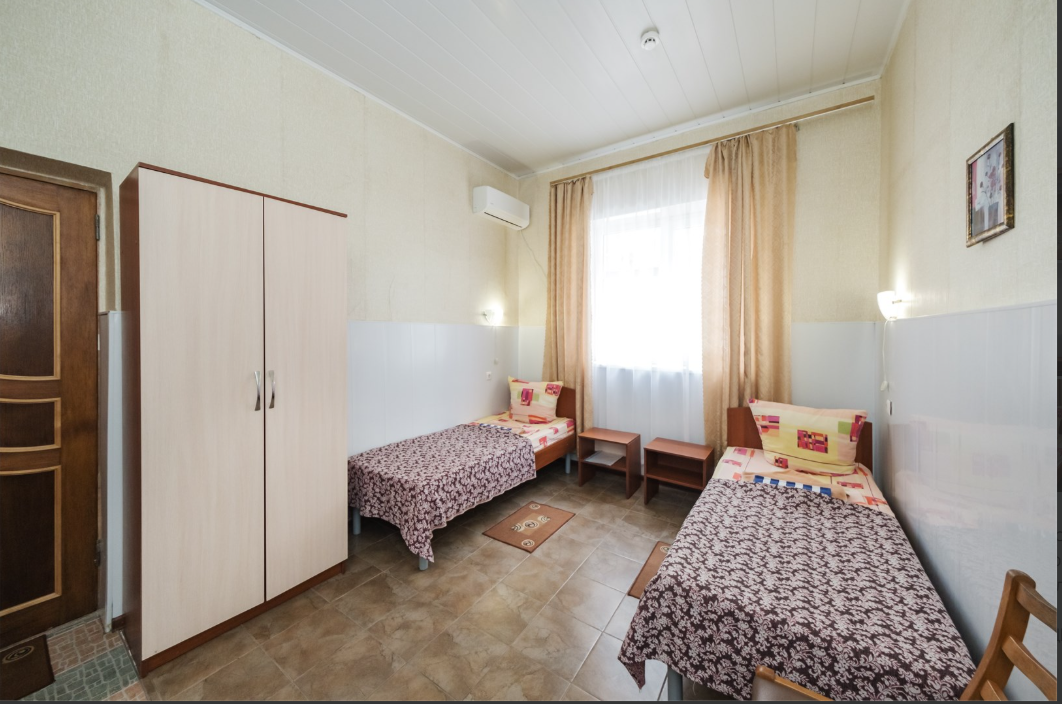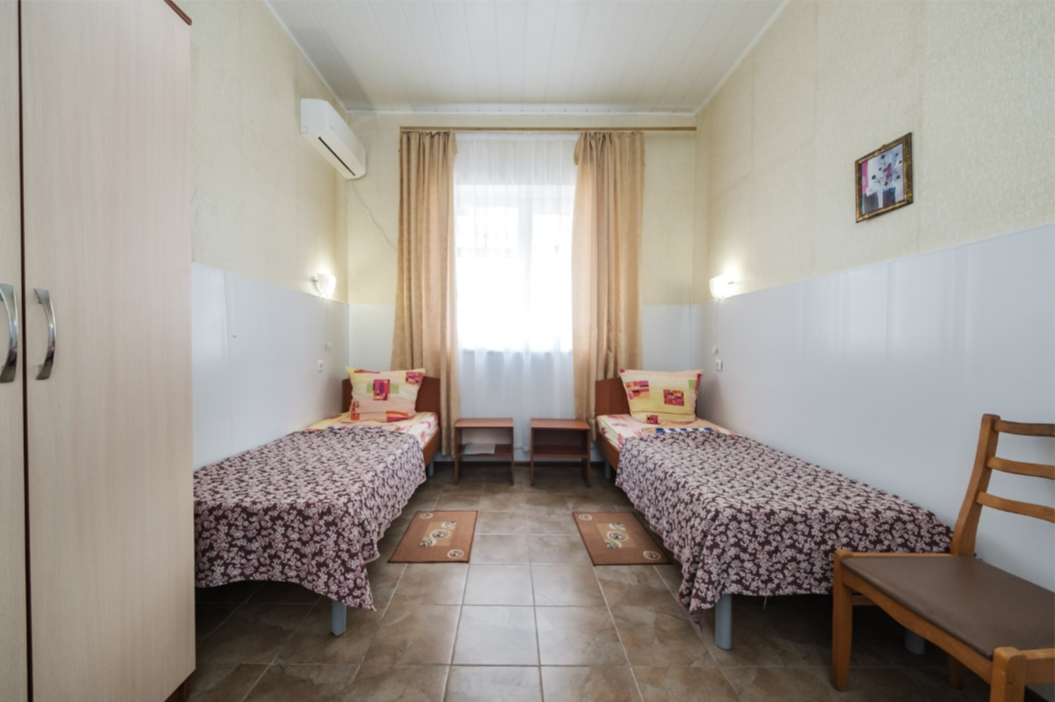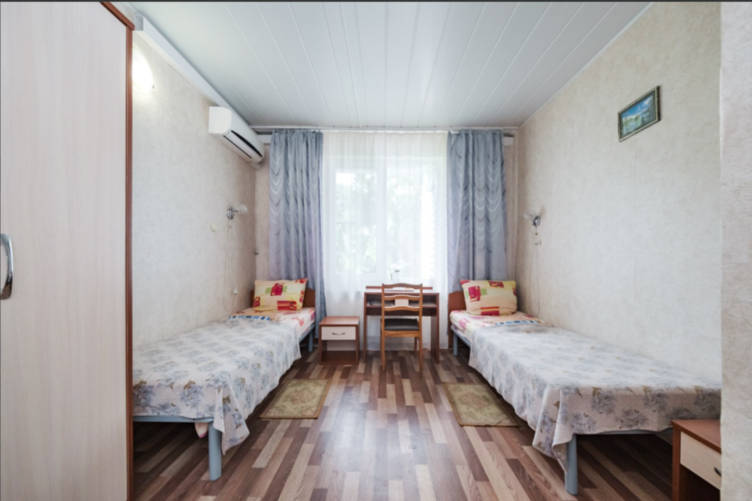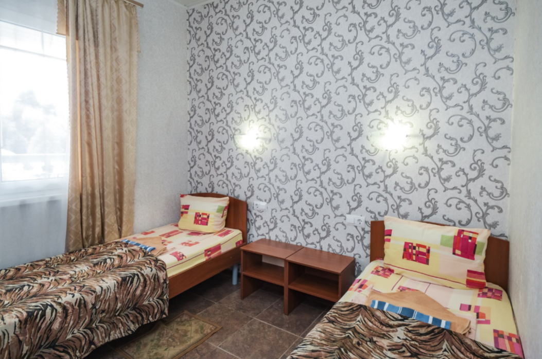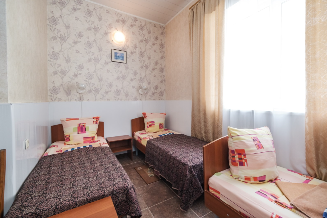 Комплекс занимает благоустроенную территорию площадью 4000 кв.м. и включает в себя 4 спальных корпуса в два и три этажа. Гостей ожидаю номера категории Стандарт, оснащенные санузлом, сплит-системой и необходимой бытовой техникой — телевизором, холодильником, электрочайником.