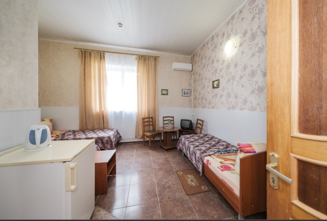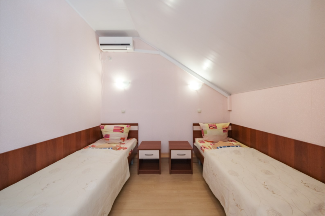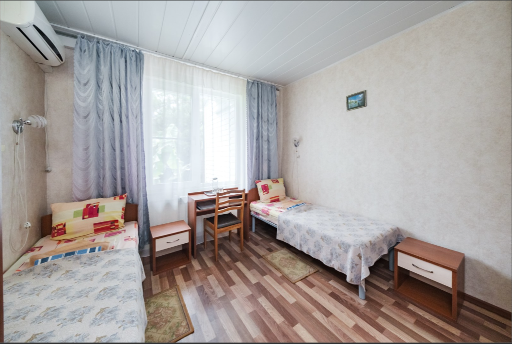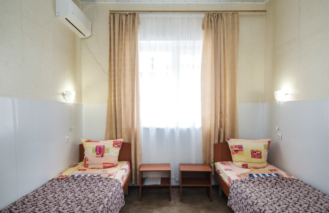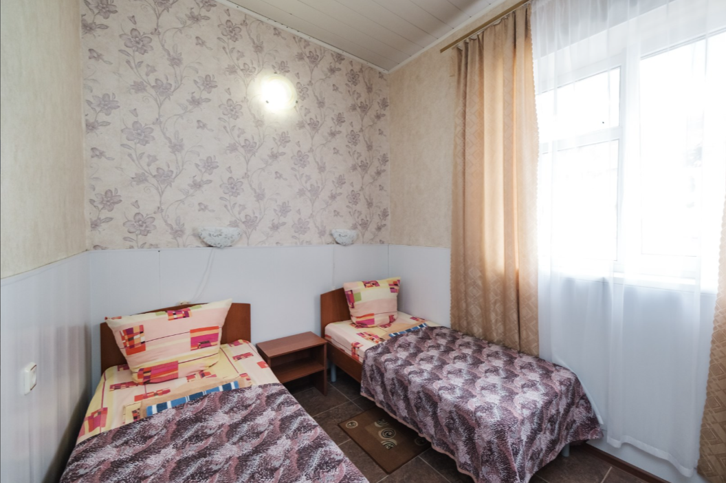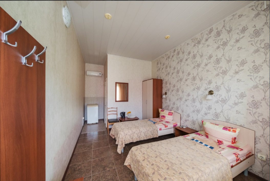 Комплекс занимает благоустроенную территорию площадью 4000 кв.м. и включает в себя 4 спальных корпуса в два и три этажа. Гостей ожидаю номера категории Стандарт, оснащенные санузлом, сплит-системой и необходимой бытовой техникой — телевизором, холодильником, электрочайником.