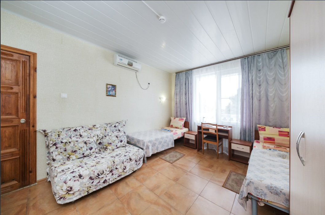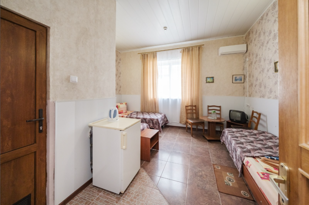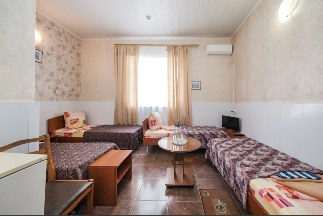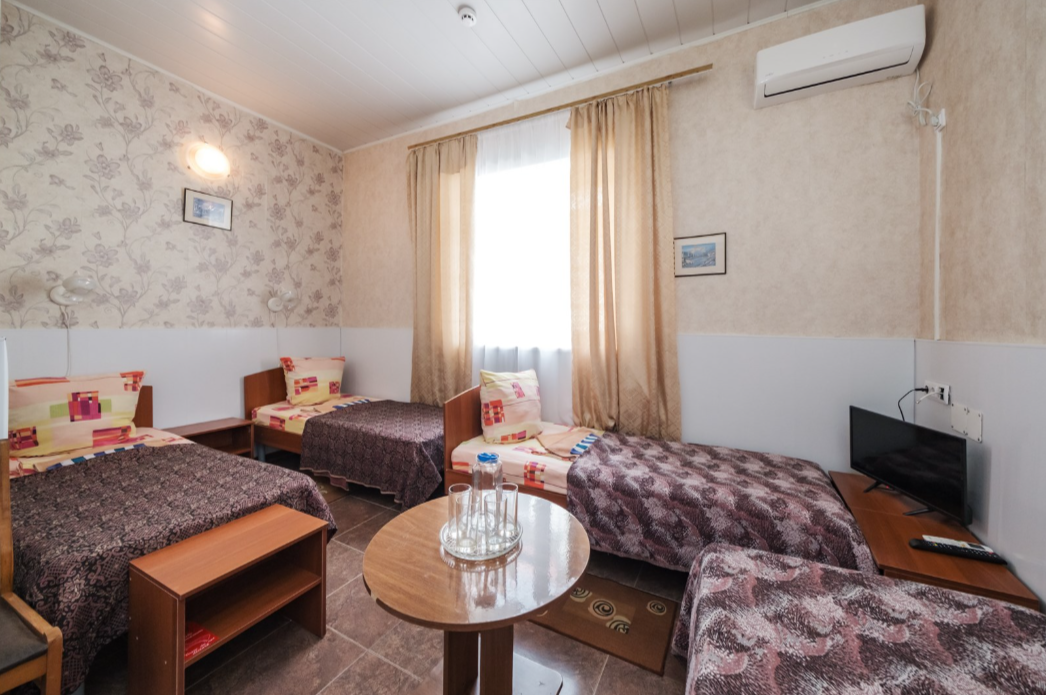 Уютный 4х местный номер со всем необходимым для комфортного проживания. Номер данной категории находится на 2 этаже, на теневой стороне. В данной категории номеров проживание с животными ЗАПРЕЩЕНО.