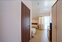 В однокомнатном номере есть все необходимое для комфортного проживания 2-х человек. В номере допускается дополнительное спальное место — евро раскладушка. Все номера данной категории находятся на 3 этаже. Проживание детей от 0 до 12 лет (включительно) на дополнительном спальном месте возможно при его наличии и по действующим тарифам. Цвет мебели и фактура могут отличаться от фото на сайте. В данной категории номеров проживание с животными ЗАПРЕЩЕНО.