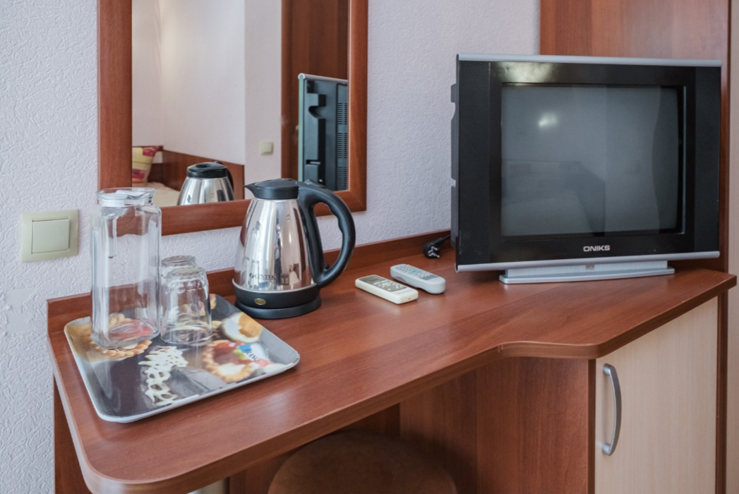 В однокомнатном номере есть все необходимое для комфортного проживания 2-х человек. В номере допускается дополнительное спальное место — евро раскладушка. Проживание детей от 0 до 12 лет (включительно) на дополнительном спальном месте возможно при его наличии и по действующим тарифам. В данной категории номеров проживание с животными ЗАПРЕЩЕНО.