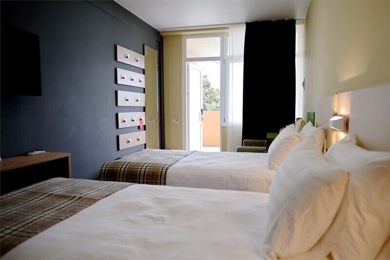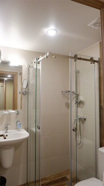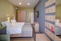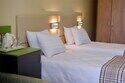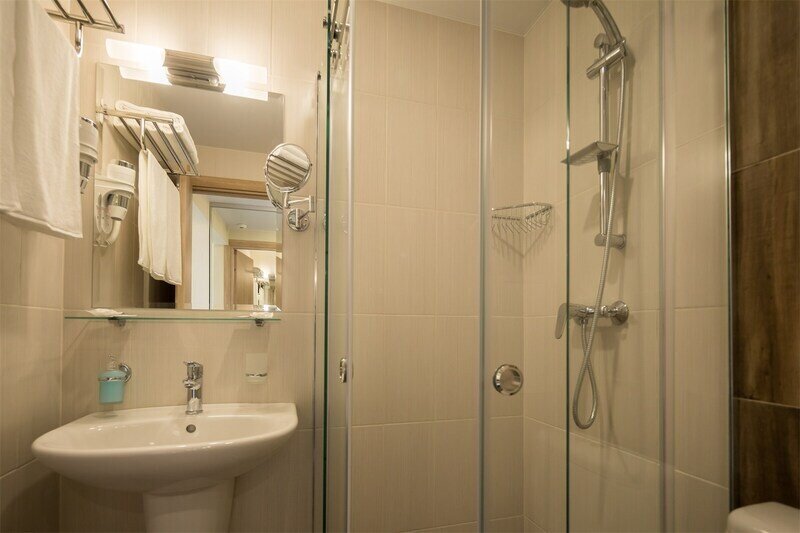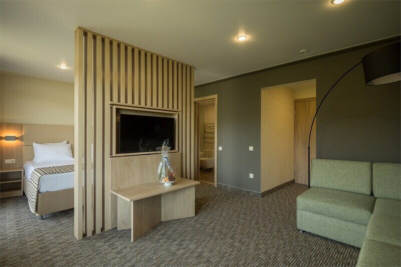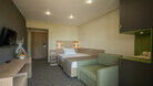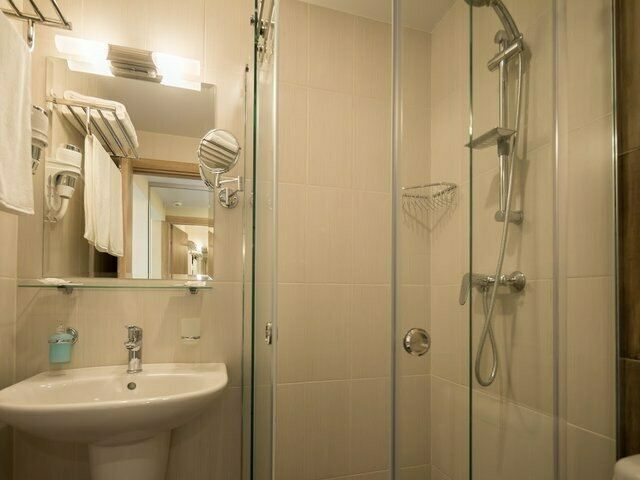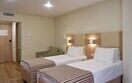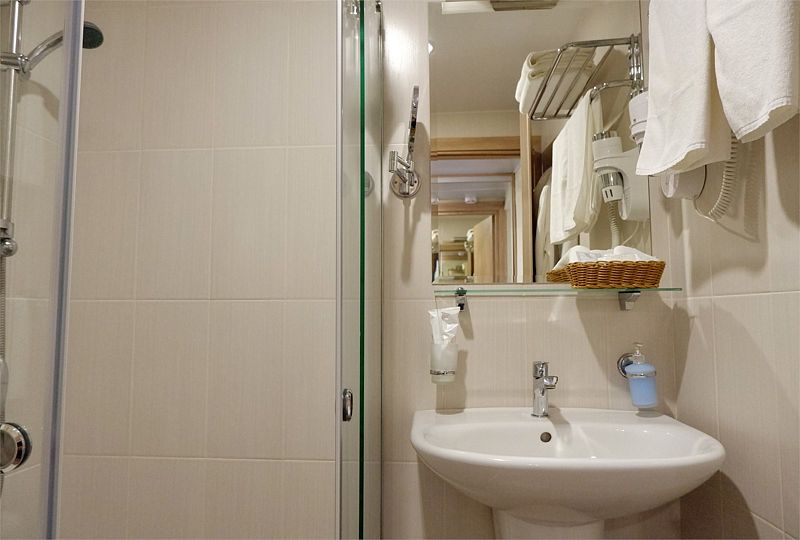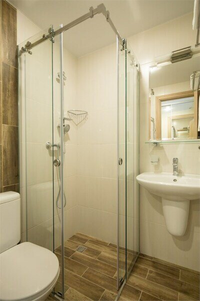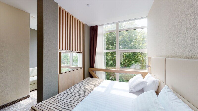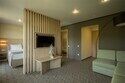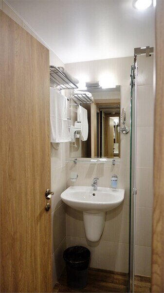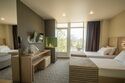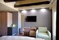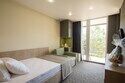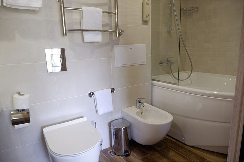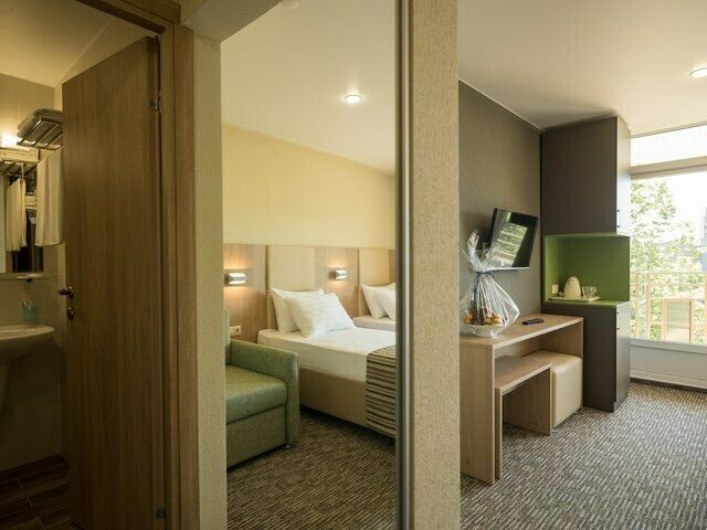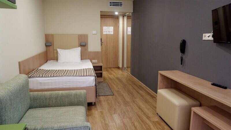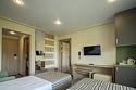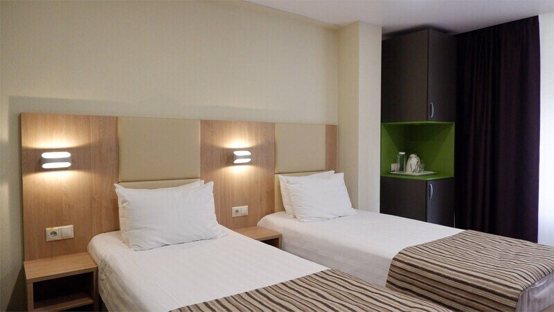 В номере: две односпальные кровати (90х200) с возможностью соединения в одну двуспальную кровать (180х200), дополнительное место (раскладной диван), совмещенный санузел.