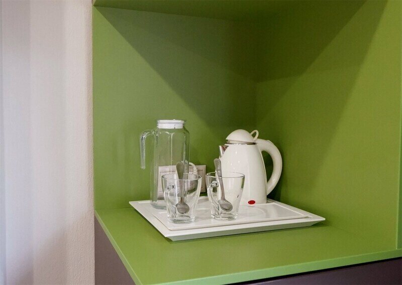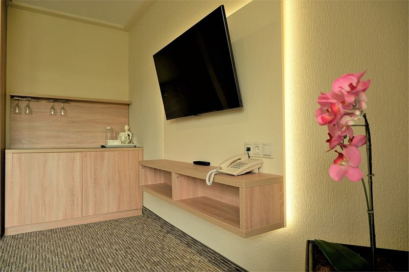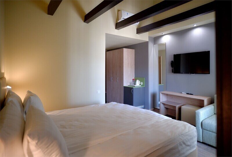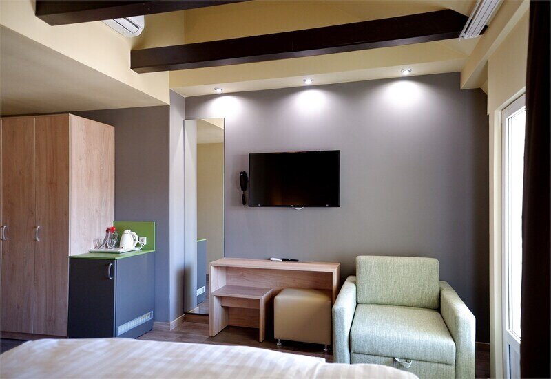 Номер оборудован системой кондиционирования, ЖК-телевизором, мини-холодильником, феном, сейфом, телефоном, чайной станцией.