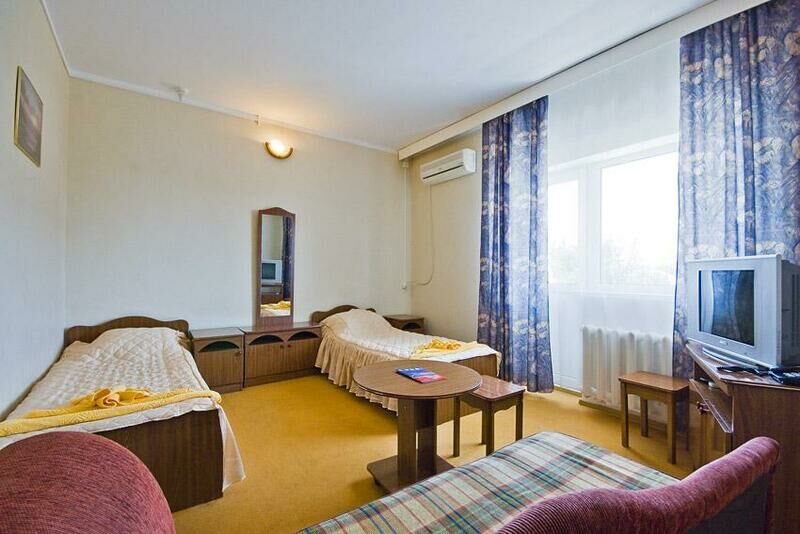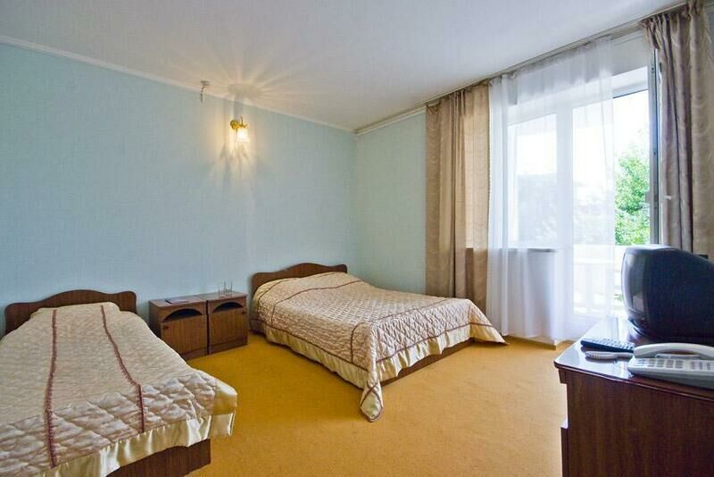 Лечение и оздоровлениеДостоинстваПосетили мы этот пансионат с детьми в июле 2018. Понравилось абсолютно всё, номер был очень удобным, спальных мест нам хватило, у двух комнат был балкон. Не было жарко, так как был кондиционер, номер был отремонтированный, но ковролин не первый свежести. Номер был чистым, на телевизоре работают шесть каналов, имелся небольшой холодильник. На первом этаже был кулер. Уборку проводили ежедневно, регулярно меняли постельное белье и полотенца. Понравилось питание, оно было организовано по системе шведский стол, выбор есть. Было два бассейна, для детей и взрослых, вода в них была тёплая. Имелся бар, анимация для детей, различные развлечения для детей.