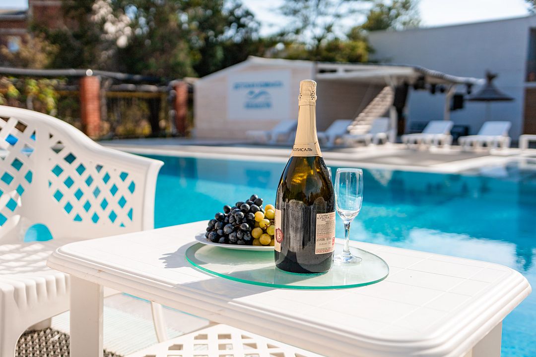Тип бассейна: открытый бассейнРядом с бассейном: шезлонги, зонтики, бар у бассейнаРазмеры: 3.5 x 6 мПлощадь: 21 м²Время работы: от 08:00 до 20:00Глубина: 200 смПериод работы: с 25.04 по 27.09.