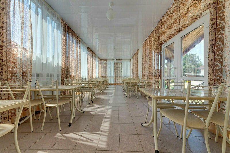 Питание организовывается в просторной и светлой столовой. Опытные повара стараются удивлять приезжих разнообразными и вкусными блюдами.