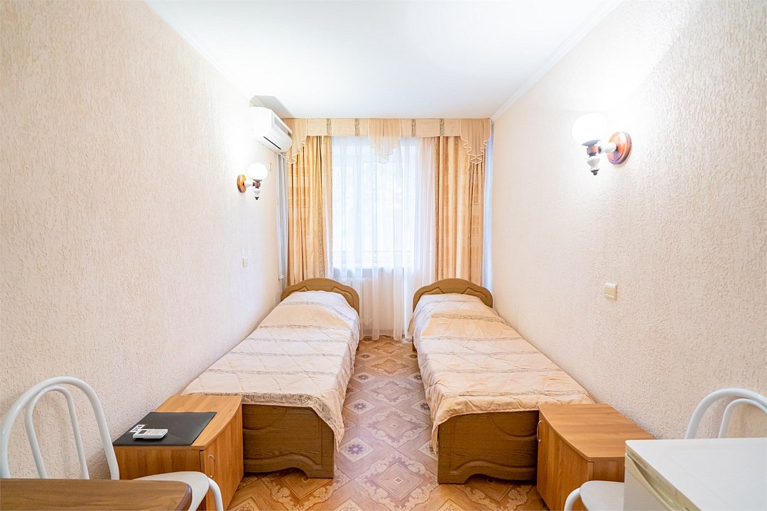 Однокомнатный номер с двумя раздельными кроватями, площадь номера 9.4 кв.м. В каждом номере лоджия, с которой открывается красивый вид.Услуги и удобства