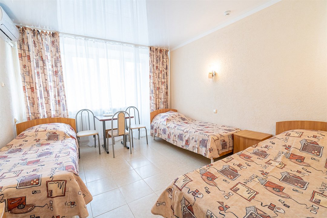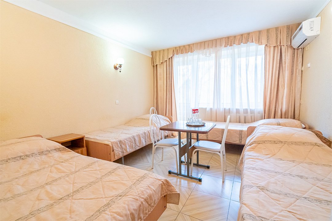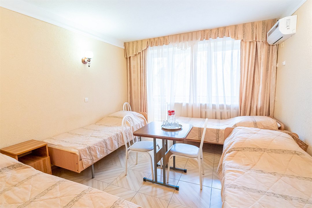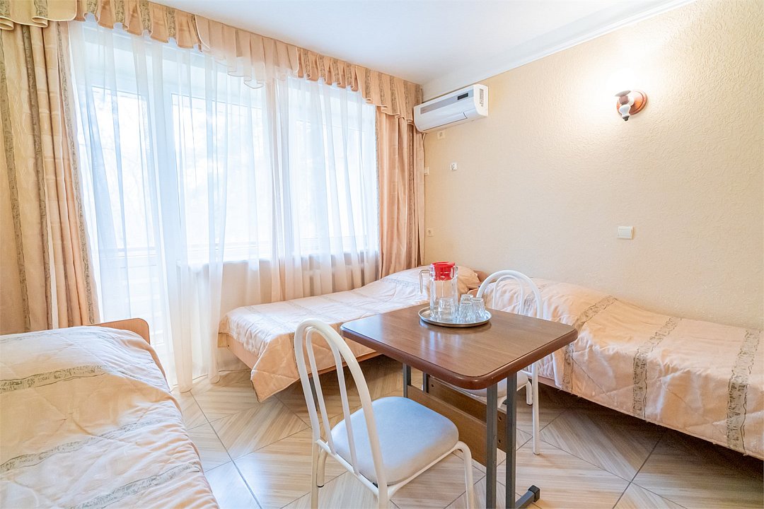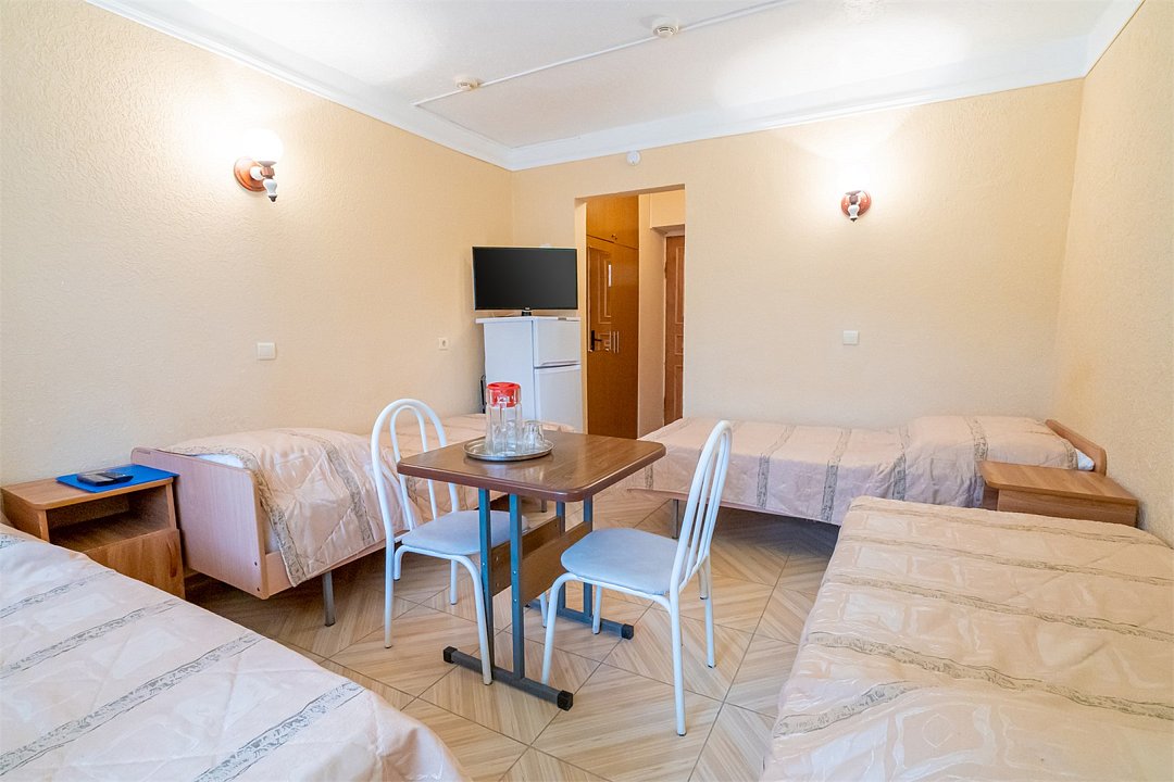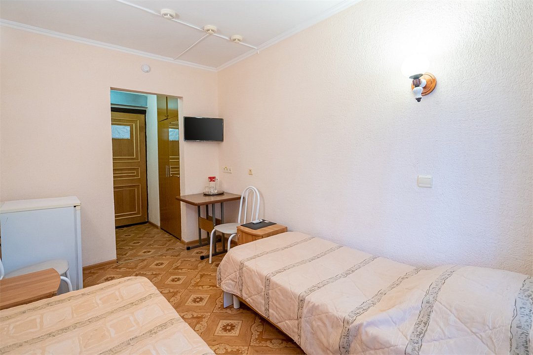 Однокомнатный номер с тремя раздельными кроватями, площадь номера 14 кв.м. В каждом номере балкон, с которой открывается красивый вид.Услуги и удобства