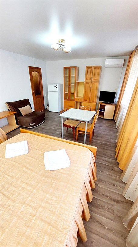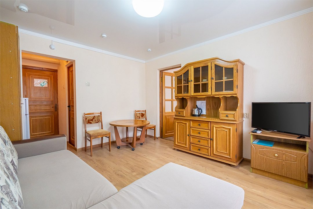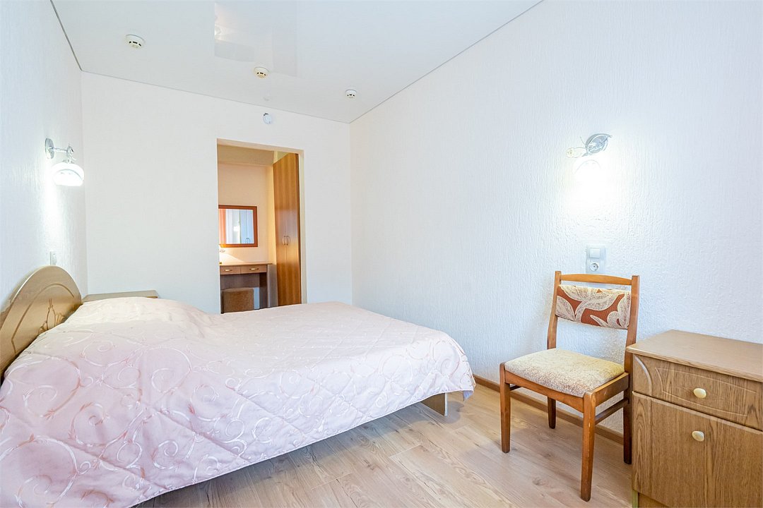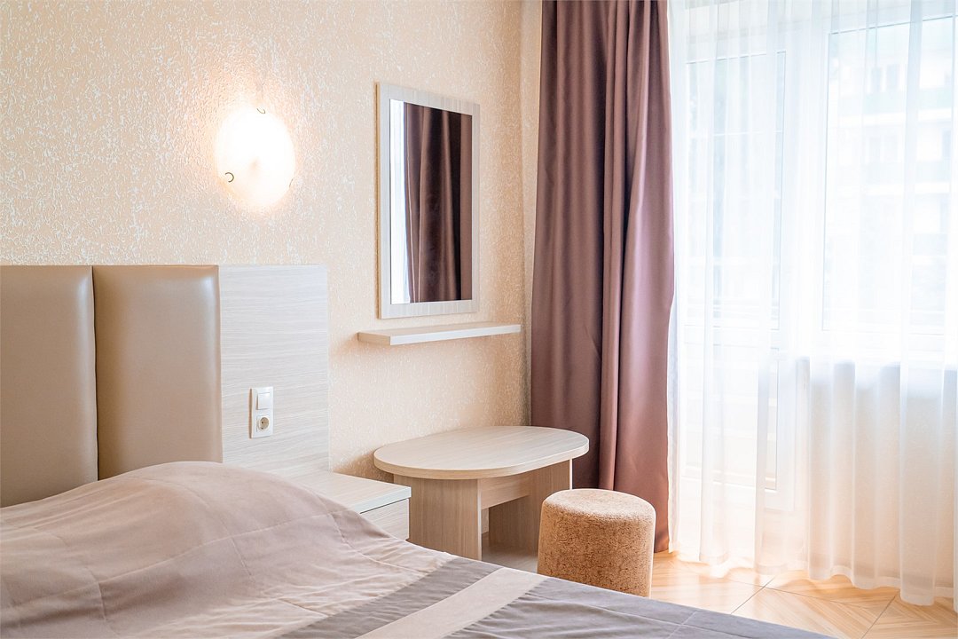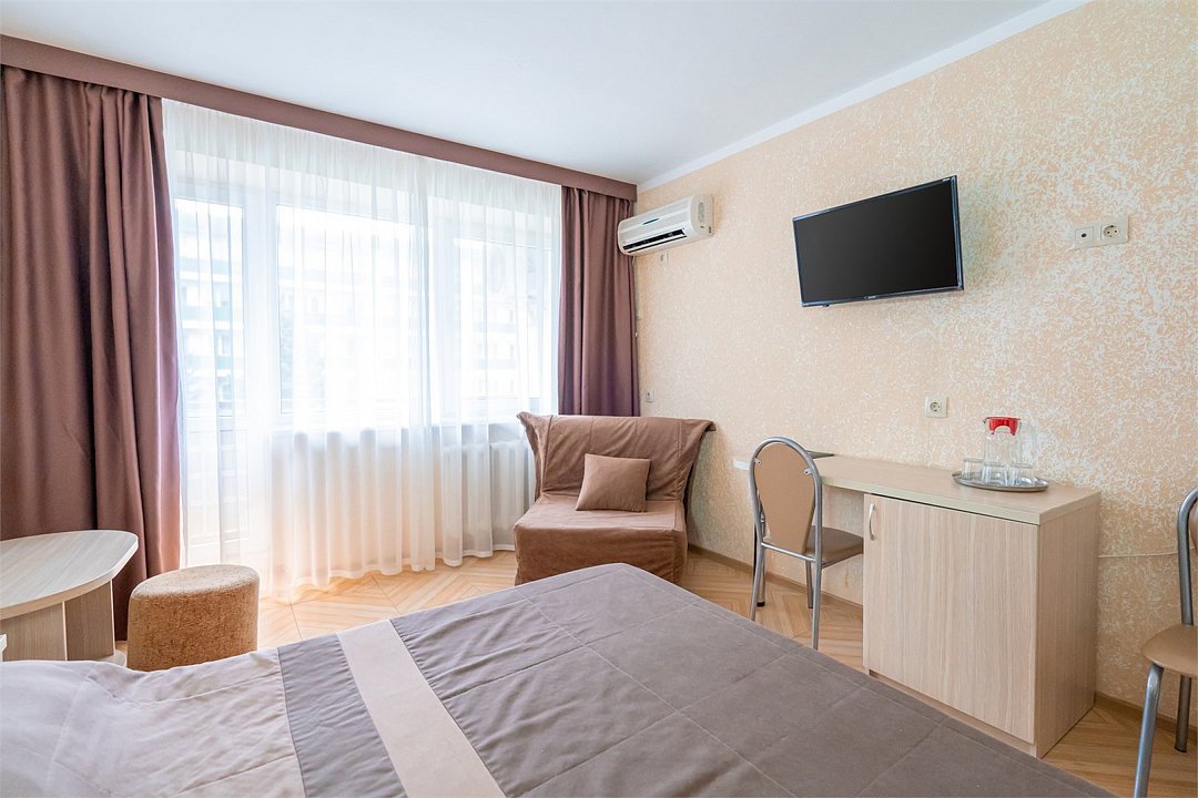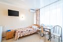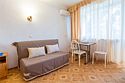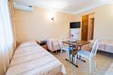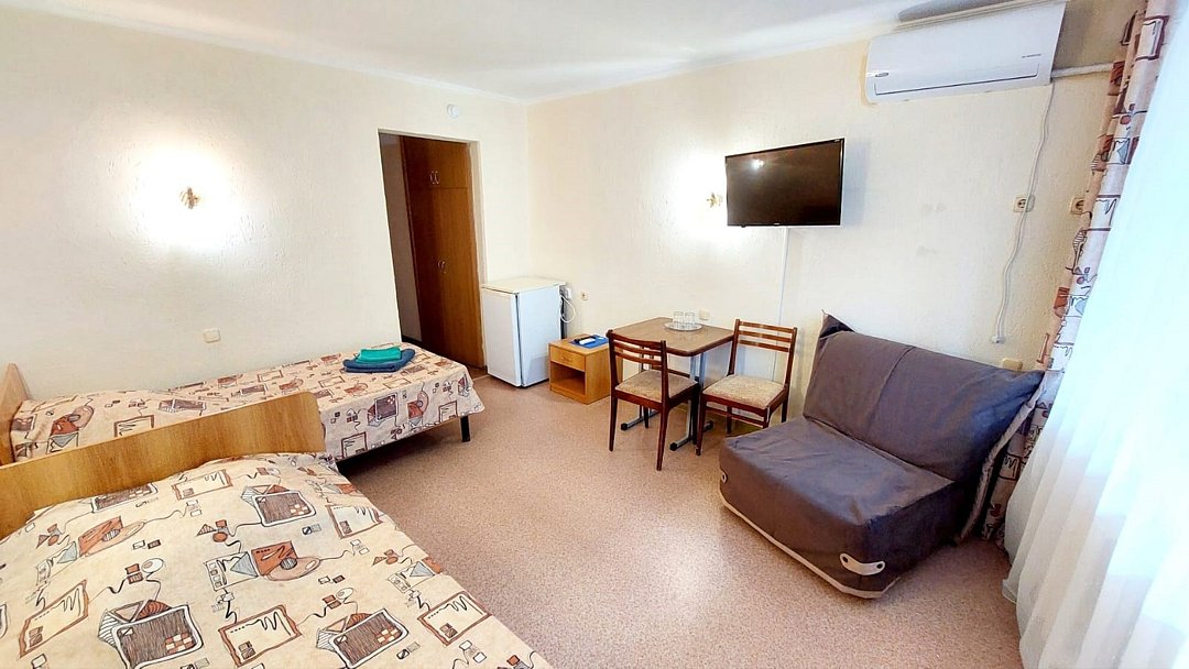 Однокомнатный номер с двумя раздельными кроватями и раскладным диваном (размер спального места 140*195), площадь номера 14 кв.м. В каждом номере лоджия, с которой открывается красивый вид.Услуги и удобства