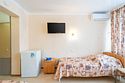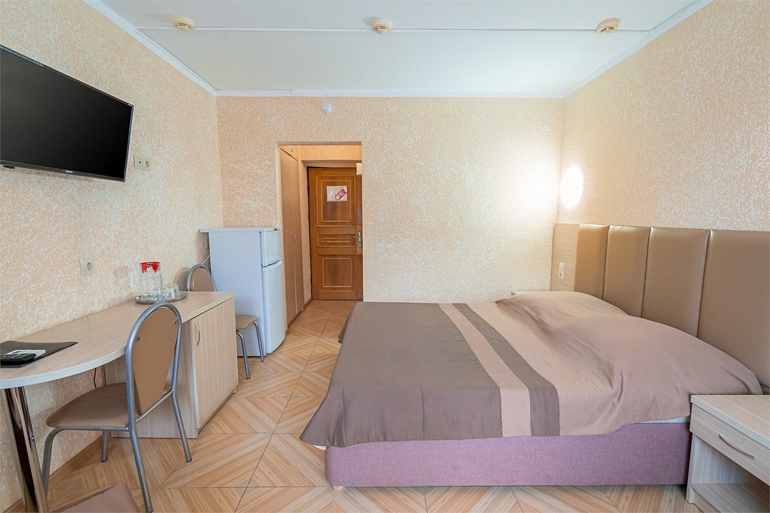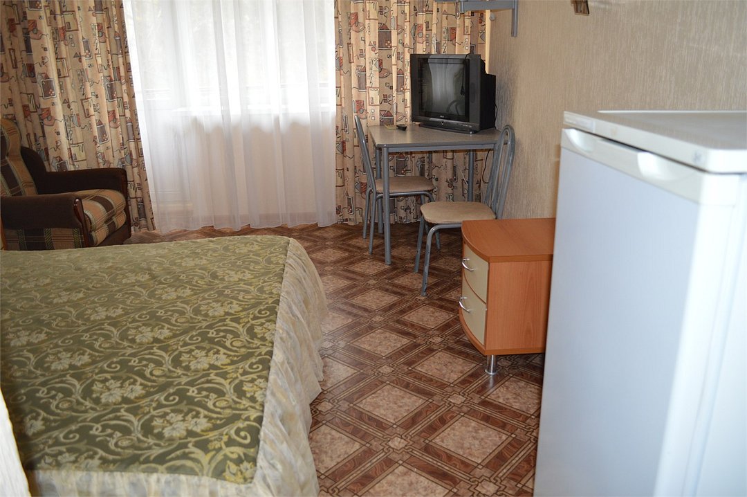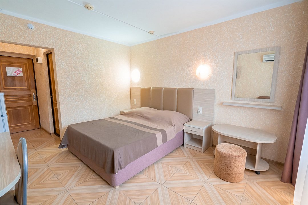 Однокомнатный номер с двухспальной кроватью, площадь номера 14 кв.м., дополнительное место (раскладное кресло или диван). В каждом номере лоджия, с которой открывается красивый вид.Услуги и удобства