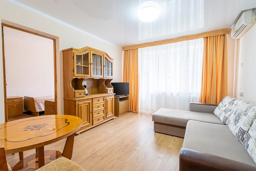 телевизор, Wi-Fi, холодильник, банные полотенца, балкон с красивым видом, две односпальные кровати, стулья, шкаф для одежды, вешалки, зеркало, две комнаты, набор посуды, чайник, унитаз, раковина, душ, стол, сплит-система, цифровое тв, раскладной диван, без питомцевВ гостиничном номере