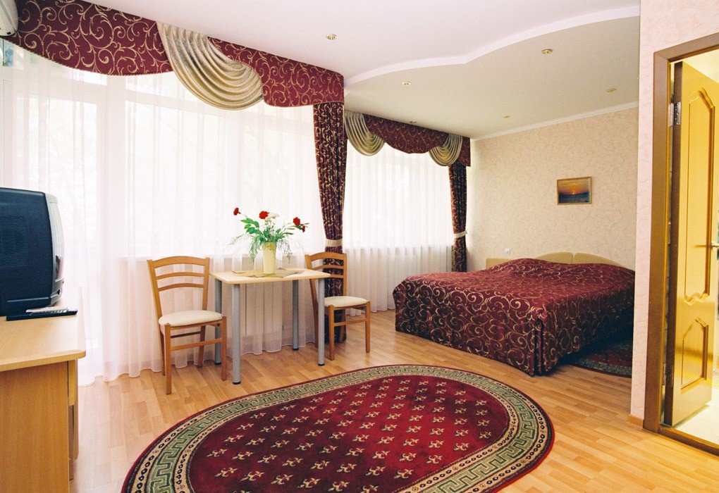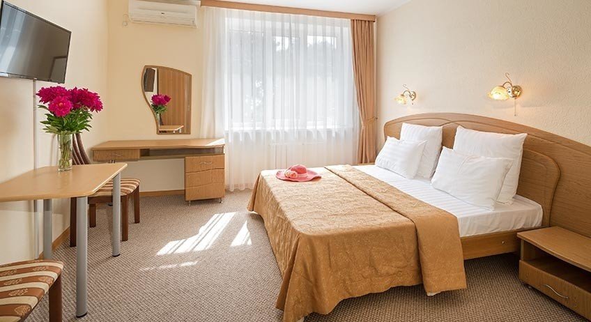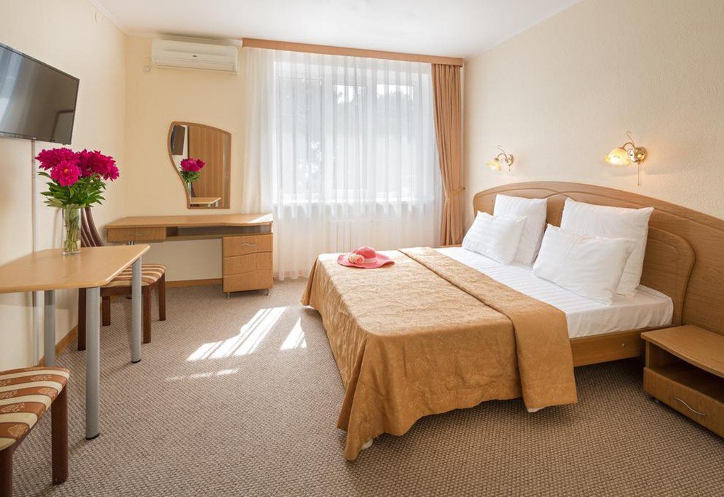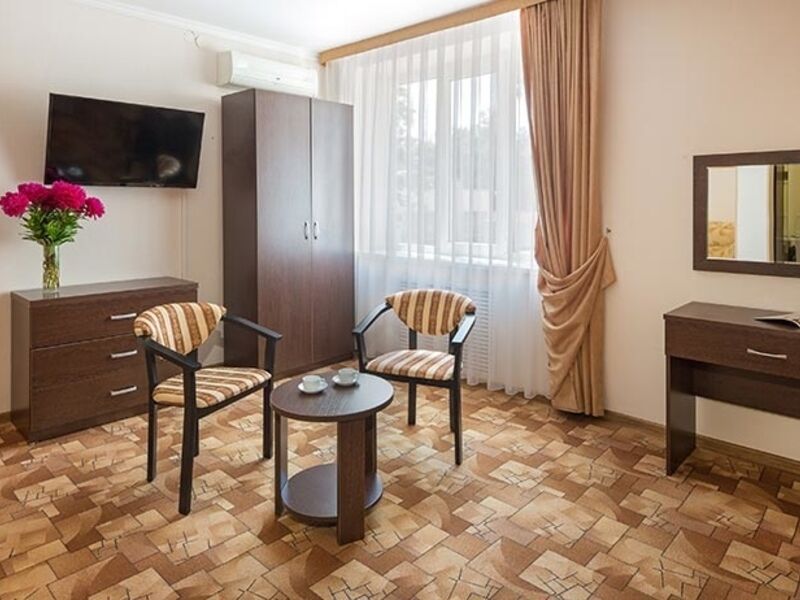 Пансионат представляет собой два 3-х этажных корпуса пансионата. Жилой фонд рассчитан на 175 мест. Номерной фонд представлен одно, двух и трехместными номерами. В двухместных и трехместных номерах имеется возможность дополнительного места – евро-раскладушка. Каждый номер хорошо меблирован и оснащен стандартной бытовой техникой с собственным санузлом, некоторые номера имеют выход на балкон. Для автовладельцев на территории организована автостоянка.