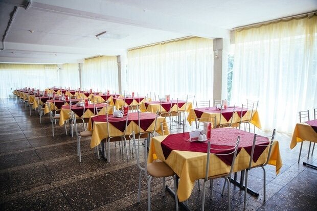 Здание пансионата состоит из пяти этажей без лифта. На втором этаже расположена столовая. Предоставляется комплексное питание.