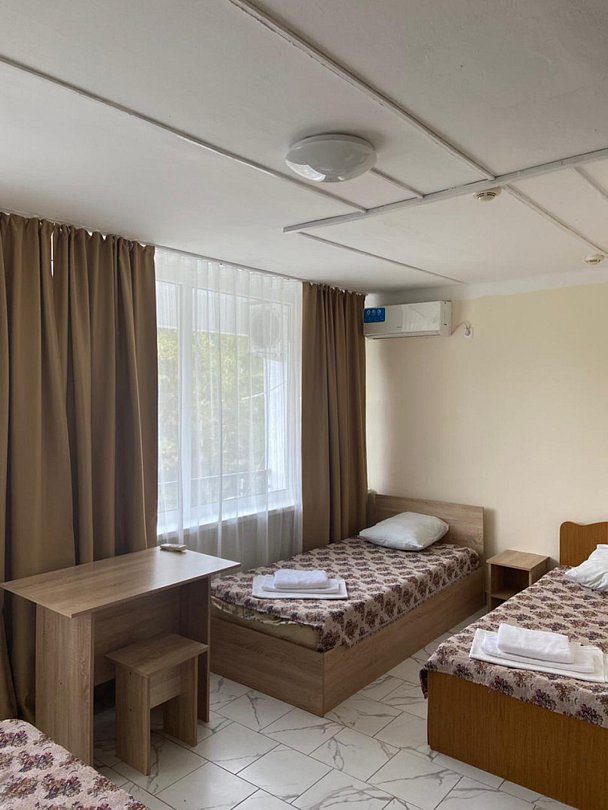 НедостаткиПляж очень-очень плохой. Одни валуны и камни. Приехали с побитыми ногами и коленями. По питанию: Заявлен шведский стол! Насколько я знаю это набор блюд на выбор. И посетитель столовой накладывает себе самостоятельно то, что выбрал... Здесь стояли два человека и спрашивали что и сколько положить. и если я просила два кружочка кабачка, то мне вылавливали с противня самые маленькие... которые убегали от щипцов))) Из напитков только чай! разбодяженный с сахаром уже в бачке. В первый день был компот ( розовая вода слегка подслащенная без намека на присутствие ягод и фруктов). В общем убогость и скудность. В номерах ремонт и мебель возрастом лет 50 и старше.Запах старья непередаваем!!! Разочарованы и не рекомендуем для посещения! Да! дверь! Дверь в номер открыли совместными усилиями с соседями. Больше закрыть на ключ не смогли. Носили все документы и проч с собой. Вещи оставляли на свой страх и риск!