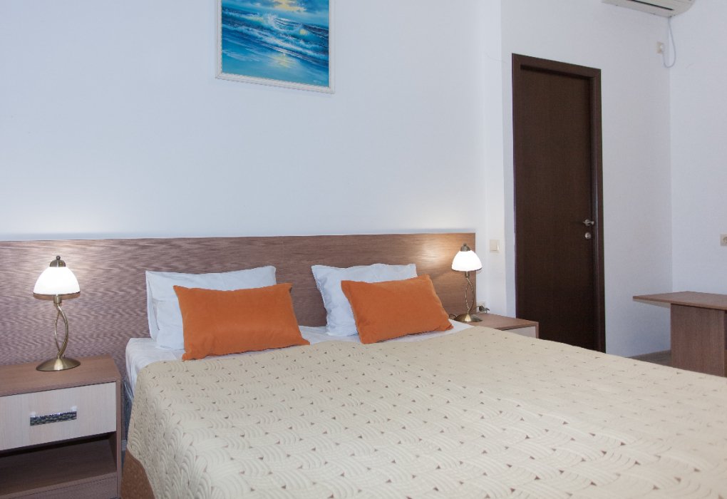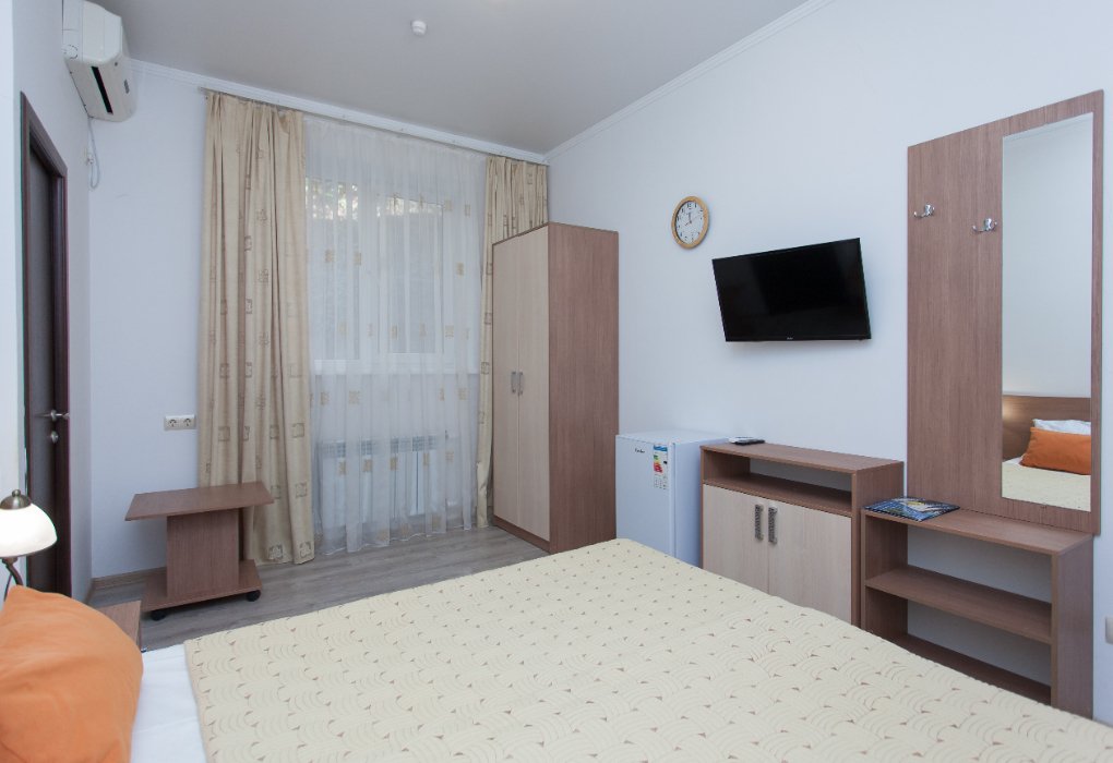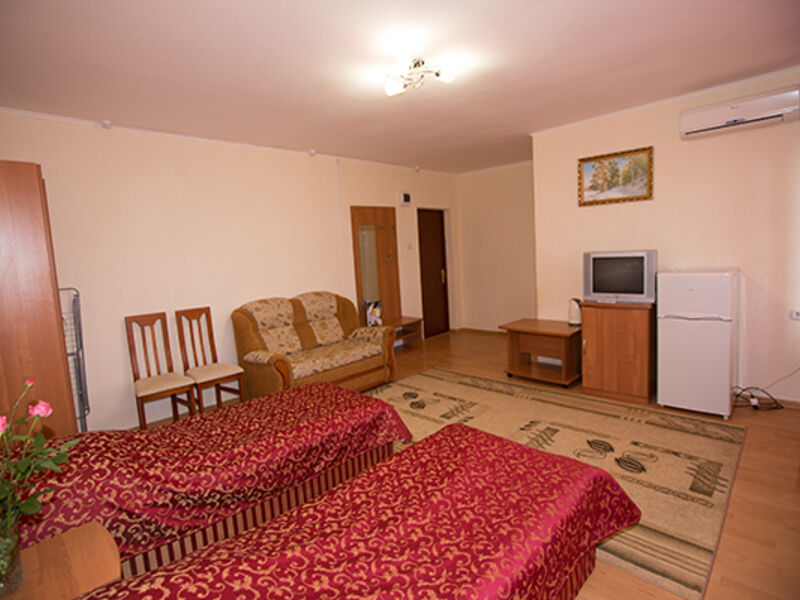с/у, душ, (TWIN или DBL), шкаф для одежды, тумбы, зеркало, холодильник, спутниковое телевидение, сплит система, фен. По согласованию возможно доп. место (евро раскладуш