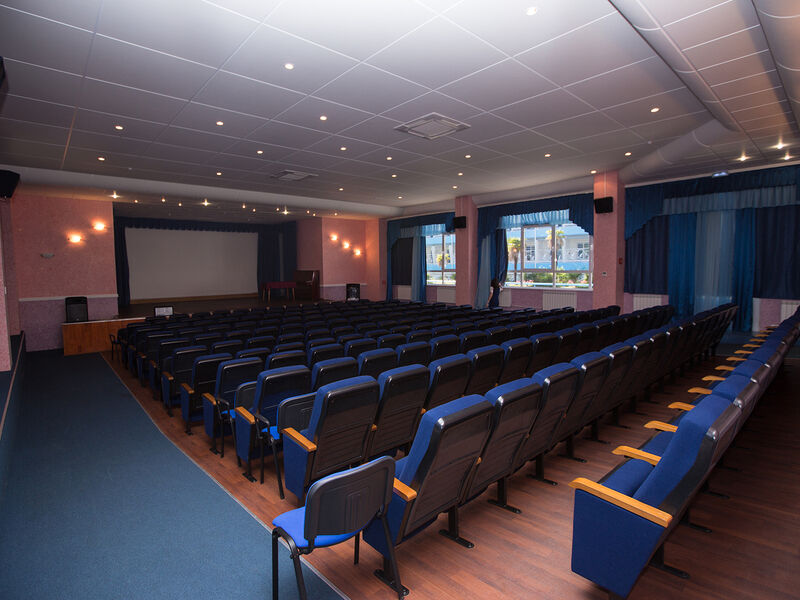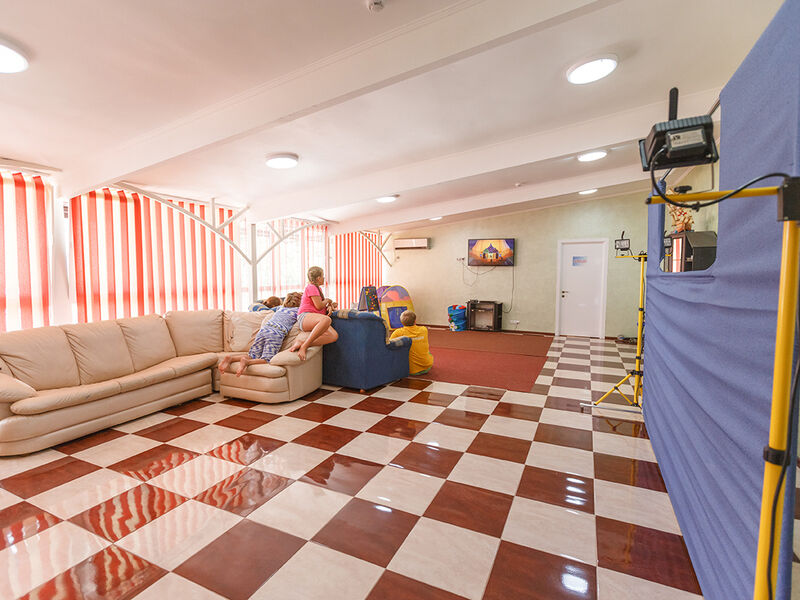 К услугам отдыхающих пансионата – огромный открытый бассейн площадью в 370 кв метров, и ещё один детский, крытый зал тренажёров и спортивные площадки: 2 баскетбольные, волейбольная, для стритбола, теннисный корт, фитнес и настольный теннис, заботы инструкторов, обслуживание косметологом и массажиста. Для более спокойного времяпровождения они могут воспользоваться возможностями кинозала, библиотеки, караоке, бильярда, посмотреть концерт или заказать экскурсию. Для отдыхающих бизнесменов имеется в наличии обширный, отлично оснащённый конференц-зал. При пансионате работают магазины: продуктовый, одежды, сувениров и пляжных принадлежностей.