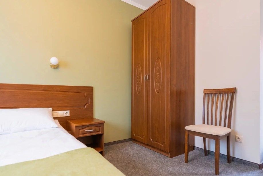 Однокомнатный номер площадью 18 квадратных метров. Две односпальные либо одна двуспальная кровать.