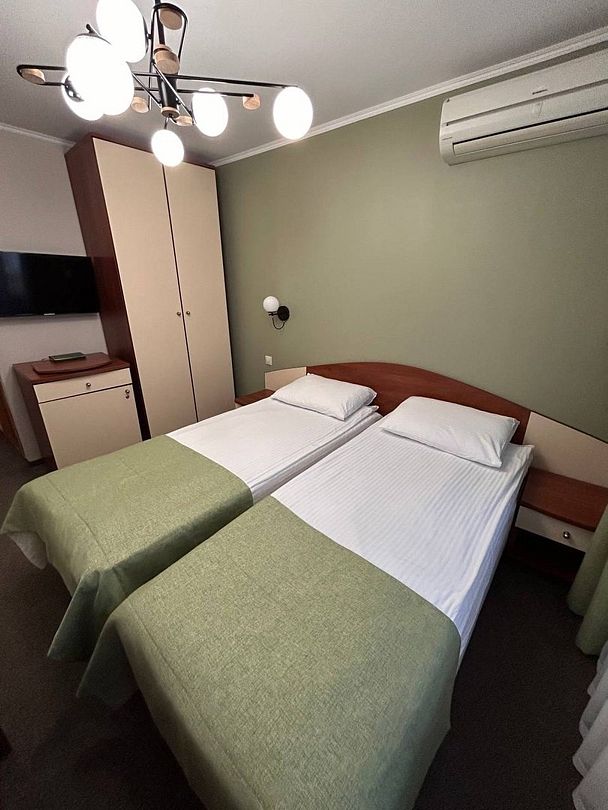 В номере для комфорта гостей есть ТВ, сплит-система, мини-бар, шкаф для одежды и две односпальные кровати, которые можно сдвинуть по запросу. Ванная комната оборудована душем, а также имеются гигиенические средства и набор полотенец.