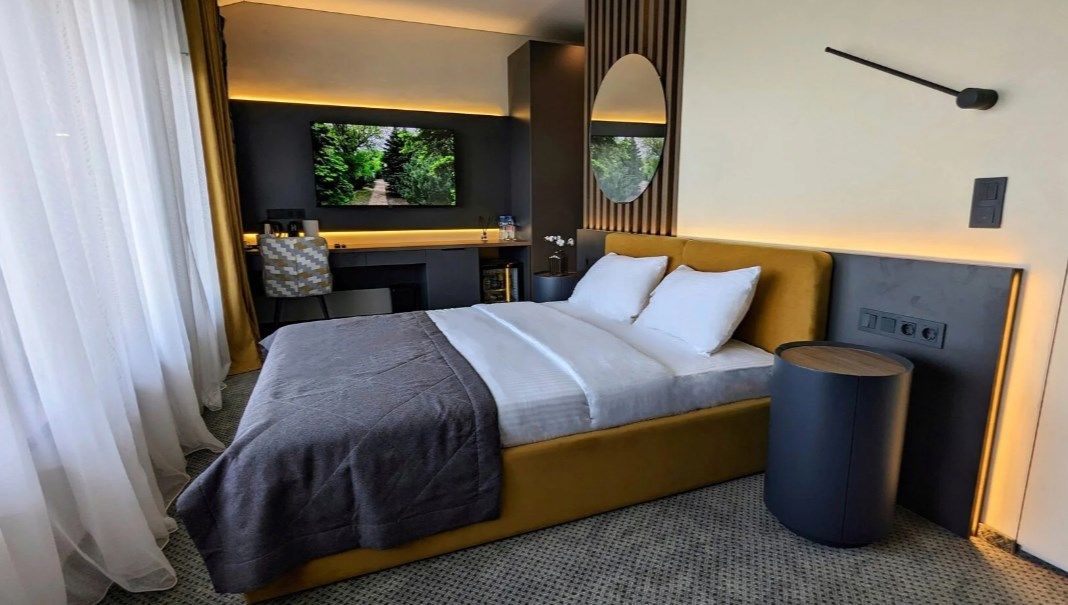 Однокомнатные номера площадью 21 квадратный метр, обновлены в 2023 году. Данная категория номеров расположена на 5 этаже с прекрасным видом. Номер «Супериор» создан по дизайнерскому проекту и предназначен для комфортного отдыха.
