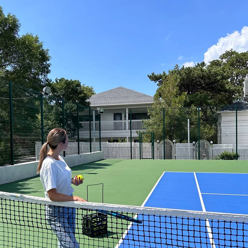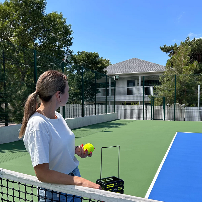 Есть все необходимое оборудование, чтобы вы могли получить удовольствие от игры. Благодаря качественному покрытию корта и чистому воздуху, вы сможете полностью погрузиться в игру.