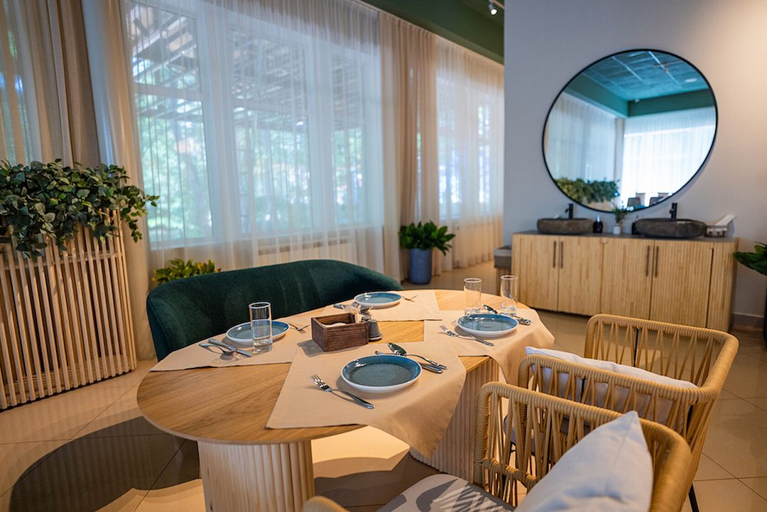 В корпусах представлены однокомнатные и двухкомнатные номера площадью от 16 до 62 м². Также для размещения доступны современные виллы премиум-класса с уютной атмосферой и панорамными окнами с видом на Черное море.