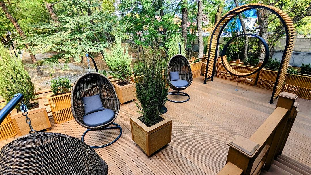 Номер «Супериор Терраса» — идеальный вариант для размещения компании до 5 человек. Главной особенностью номера является терраса с удобной мебелью.