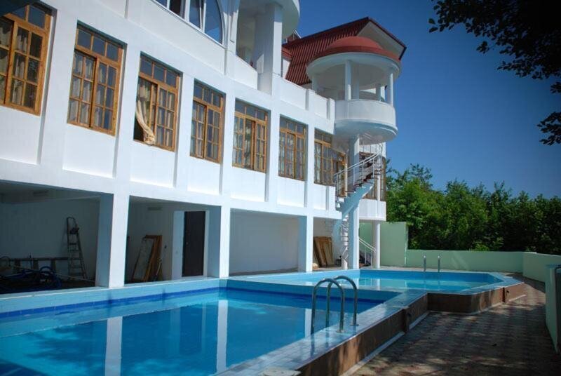 2 бассейна на территории, чистые (чистят каждый вечер) спасают во время шторма на море и тех, кому тяжело ходить под горку/ в горку на пляж. Пляж на территории министерского санатория - чистый, оборудован душем и туалетом. Выдают лежаки. На пляже всегда есть мед.сестра.