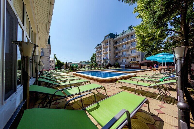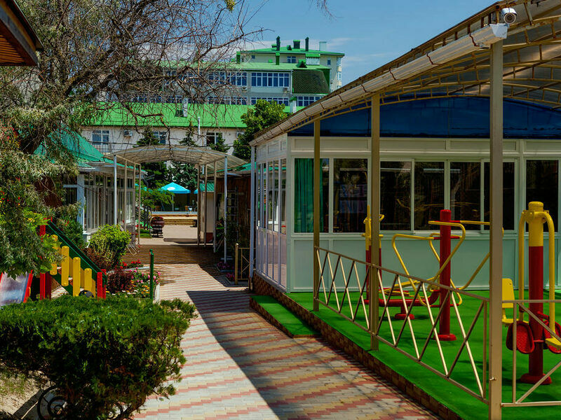 Лечение и оздоровлениеДостоинстваНеплохой пансионат на первой линии. Номер с видом на море, обустроен всем необходимым для комфортного отдыха. На окнах противомоскитные сетки. Сантехника нормальная, никогда ничего не засорялось. Питание довольно разнообразное, блюда сытные. Пляж чистый, с достаточным количеством лежаков. Анимация есть, детская комната тоже присутствует. Бассейны теплые. Сама территория небольшая, но очень уютная. Отель отлично подходит для семейного отдыха.