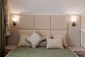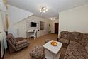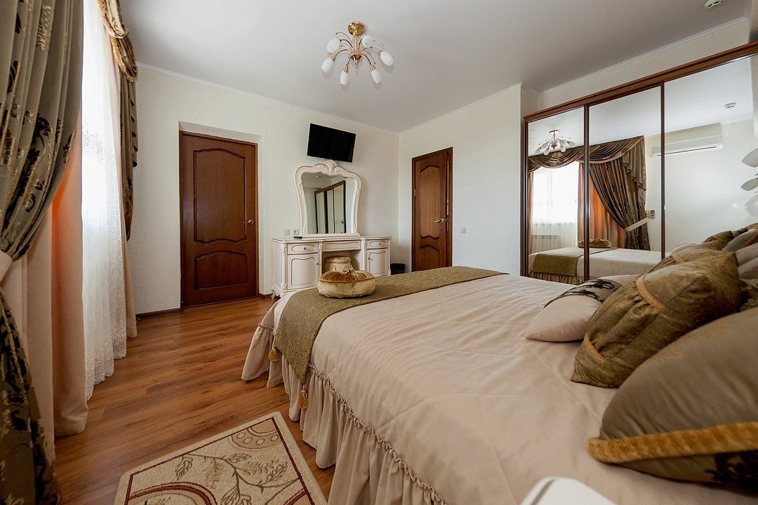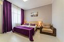 Комфортный двухкомнатный семейный номер с балконом и кухней с возможностью размещения до 5 человек. Расположен номер в 4 корпусе на 4 этаже (имеется лифт). Оптимально для отдыха большой семьей с размещением гостей на дополнительном месте. Спальная комната: двуспальная кровать, сплит-система, телевизор. Гостиная комната: раскладной диван (для 2-х человек), кресло-кровать, еврораскладушка или детская кроватка, сплит-система, холодильник, спутниковое телевидение, набор посуды, телефон, сейф. Кухня: обеденный уголок, кухонный гарнитур с плитой, набор посуды и кастрюль. Санузел1: душевая кабина, косметические принадлежности. Санузел2: джакузи, биде, косметические принадлежности, фен, халаты, тапочки.Услуги и удобства