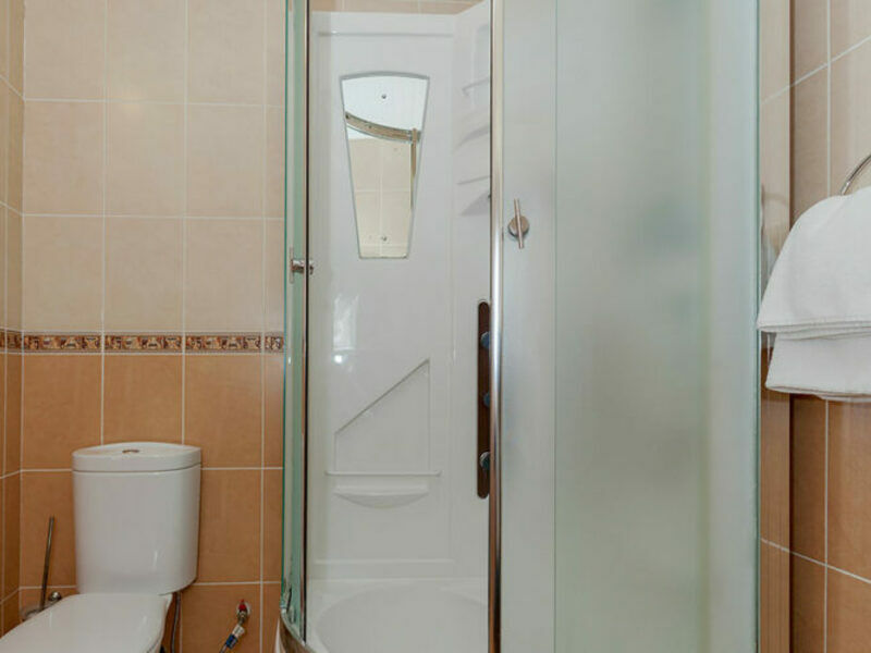 Комфортный однокомнатный эконом номер без балкона с возможностью размещения до 2 человек. Номера расположены в 5 корпусе на 2 и 3 этажах. Оптимально для отдыха одного взрослого с размещением 1 ребенка на дополнительном месте до 12 лет. Комплектация номера: две односпальные кровати, сплит-система, холодильник, телевизор, телефон. Санузел: душевая кабина, косметические принадлежности, фен.Услуги и удобства