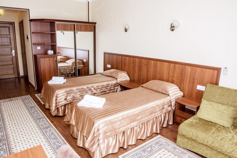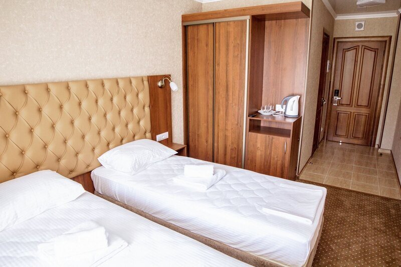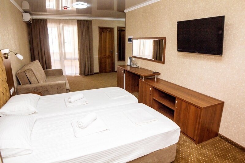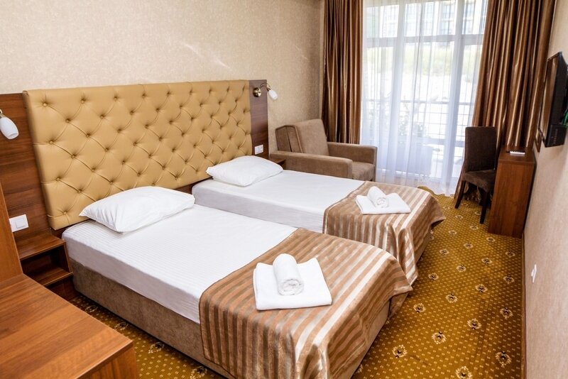 У нас номер был с широкой 2-спальной кроватью и креслом-кроватью в 1 корпусе на 7 этаже с видом на бухту😍 Белоснежное постельное и полотенца, хороший матрас и
